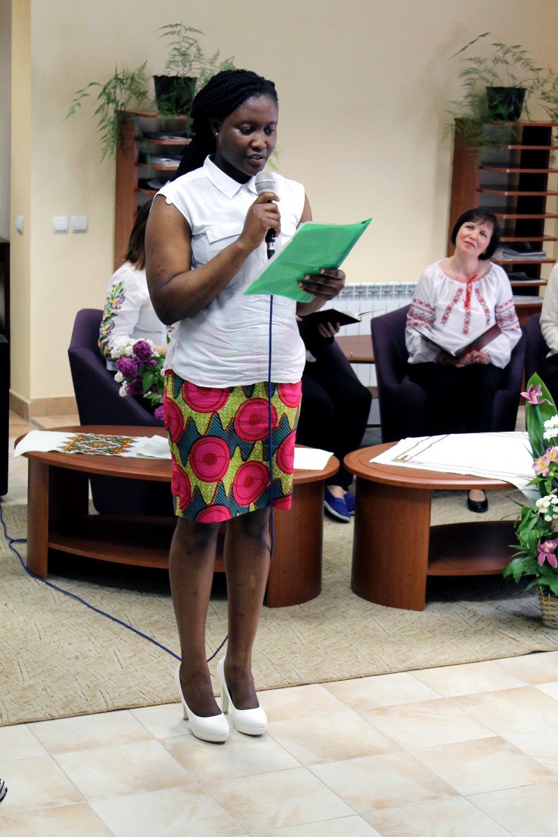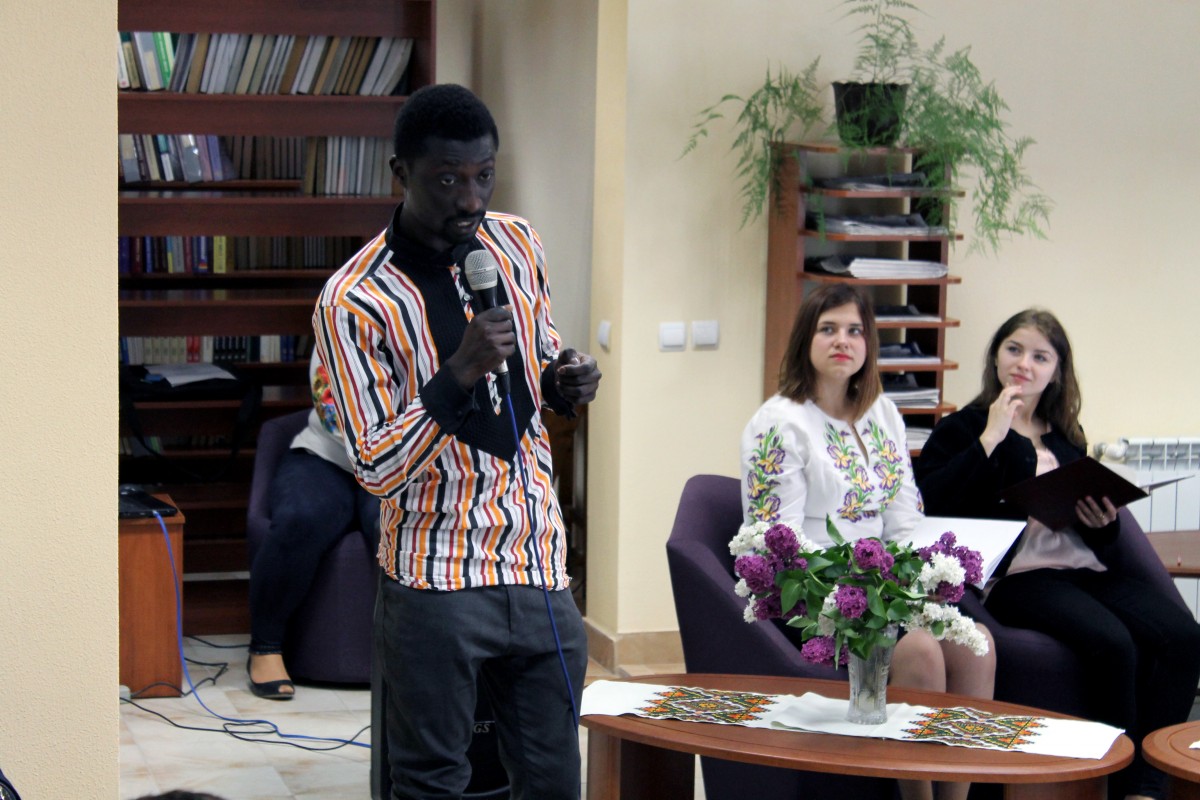 Після оплесків знову звучала поезія. Студент другого курсу Мохамед Хассан Абделмунам Елтаєб з Гани прочитав вірш про маму французькою мовою, а його співвітчизник і однокурсник Нсіах Річард – власного вірша, написаного українською, який юнак присвятив рідній мамі і всім матерям світу.