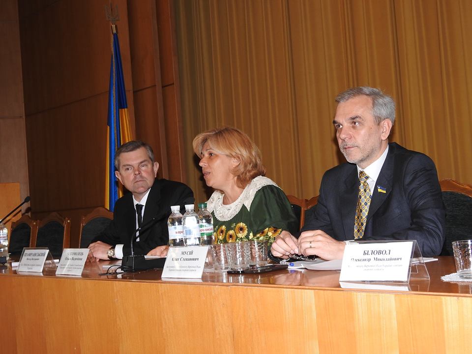 В.о. Міністра охорони здоров’я Віктор Шафранський, народні депутати ВРУ – голова парламентського комітету з охорони здоров’я Ольга Богомолець, член комітету Олег Мусій у президії парламентських слухань.