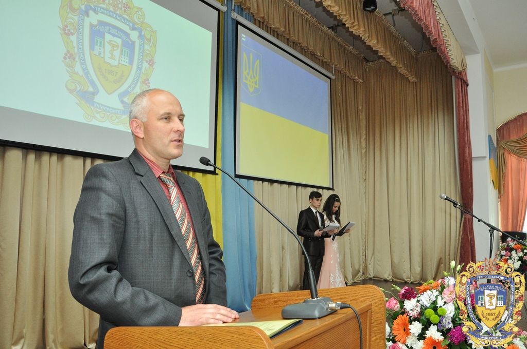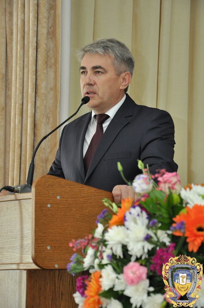 Від імені ректора ТДМУ, професора Михайла Корди всіх присутніх зі святом привітав проректор з науково-педагогічної роботи, професор Аркадій Шульгай. Він наголосив на тому, що критерієм високої фаховості лікаря є найвищий рівень знань та вміння реалізувати ці знання на практиці. Аркадій Гаврилович також акцентував увагу на тому, що викладачі ТДМУ виконують два важливих покликання – служити людям і передавати свій досвід молодим майбутнім лікарям. Він побажав усіх гараздів, успіхів, здоров’я і Божого благословення.
