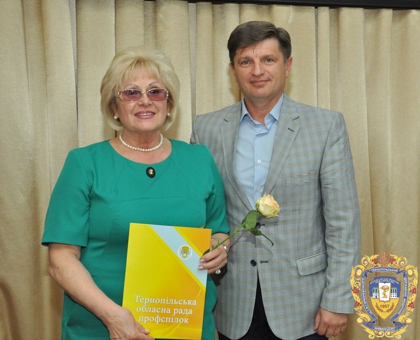 Голова Тернопільської обласної організації профспілки працівників охорони здоров’я Володимир Кузів побажав також усіх гараздів і успіхів у роботі. З його рук відзнаки отримали доцент кафедри управління та економіки фармації з технологією ліків Наталія Белей, доцент кафедри педіатрії № 2 Наталія Галіяш, старший лаборант кафедри загальної гігієни та екології Лариса Гунько, асистент кафедри невідкладної та екстреної медичної допомоги, завідувач інтернатури університету Ярослав Кіцак, доцент кафедри медичної біохімії Ірина Кузьмак, голова первинної профспілкової організації університету Петро Лихацький, доцент кафедри внутрішньої медицини № 3 Таміла Паламар, доцент кафедри нормальної фізіології Ігор Паньків, доцент кафедри патологічної анатомії з секційним курсом та судовою медициною Валентин Франчук, доцент кафедри пропедевтики внутрішньої медицини та фтизіатрії Надія Ярема.