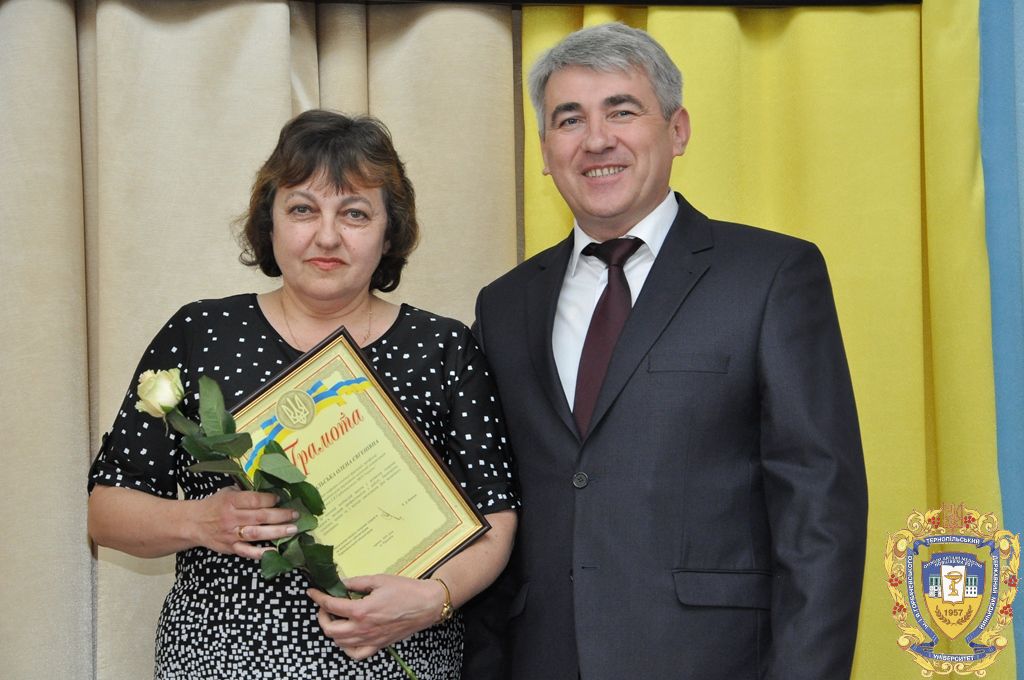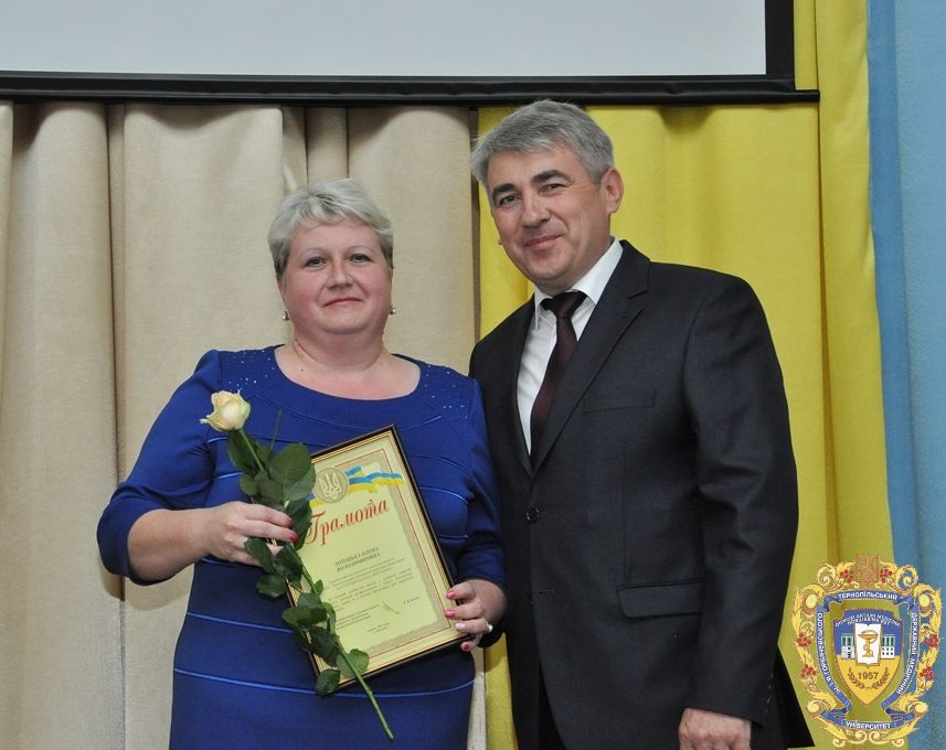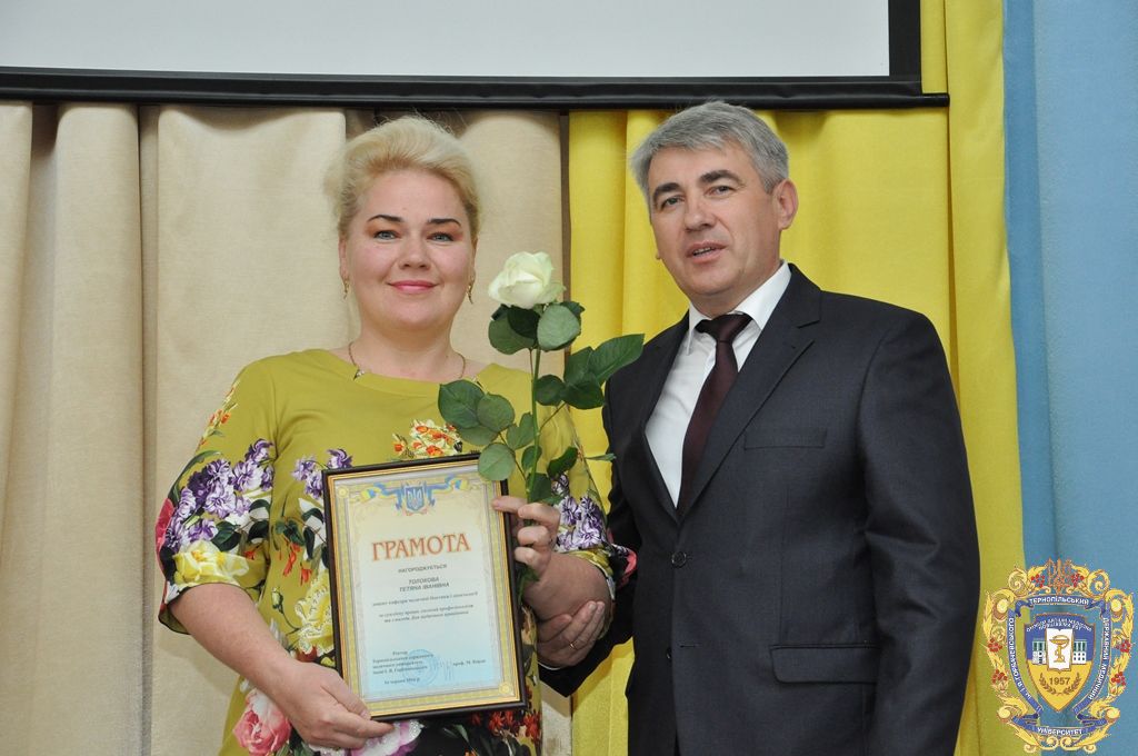 У цей урочистий день грамотами ректорату ТДМУ були відзначені доцент кафедри гістології та ембріології Олександра Андріїшин, доцент кафедри функціональної діагностики та клінічної патофізіології Олена Бакалець, асистент кафедри хірургії № 1 з урологією імені професора Л.Ковальчука Петро Боднар, доцент кафедри медичної інформатики Дмитро Вакуленко, викладач кафедри іноземних мов Марія Волощук, завідувач кафедри онкології, променевої діагностики і терапії та радіаційної медицини професор Ігор Галайчук, доцент кафедри анатомії людини Олександра Галицька-Хархаліс, доцент кафедри анатомії людини Антон Гантімуров, асистент кафедри загальної та малоінвазивної хірургії Сергій Гданський, старший лаборант кафедри клініко-лабораторної діагностики Надія Гецько, доцент кафедри іноземних мов Тетяна Горпініч, доцент кафедри патологічної анатомії з секційним курсом та судової медицини Тамара Дацко, старший лаборант кафедри невідкладної та екстреної допомоги Леся Михайлів, доцент кафедри медичної біохімії Алла Мудра, доцент кафедри української мови Оксана Новіцька, доцент кафедри філософії та суспільних дисциплін Олег Пилипишин, доцент кафедри мікробіології, вірусології та імунології Лідія Романюк, викладач кафедри медичного права Михайло Сопіга, доцент кафедри хірургії № 1 з урологією імені професора Л.Ковальчука Іван Смачило, доцент кафедри медичної біоетики і деонтології Тетяна Толокова, старший викладач кафедри патологічної фізіології Руслан Усинський, доцент кафедри інфекційних хвороб з епідеміологією, шкірними і венеричними хворобами Марія Шкільна, доцент кафедри медичної біохімії, керівник центру виховної роботи та культурного розвитку Ольга Яремчук, доцент кафедри загальної хімії Ірина Бекус, асистент кафедра фармакогнозії з медичною ботанікою Тетяна Бердей, доцент кафедри управління та економіки фармації з технологією ліків Мар’яна Демчук, асистент кафедри ортопедичної стоматології Анна Воробець, доцент кафедри терапевтичної стоматології Наталія Гасюк, асистент кафедри дитячої стоматології Леся Кучирка, асистент кафедри хірургічної стоматології Наталія Твердохліб, доцент кафедри хірургії навчально-наукового інституту післядипломної освіти Іван Баб’як, доцент кафедри фармації навчально-наукового інституту післядипломної освіти Мар’яна Чубка, доцент кафедри хірургії №2 Роман Кушнір, асистент кафедри внутрішньої медицини №2 Людмила Мігенько.