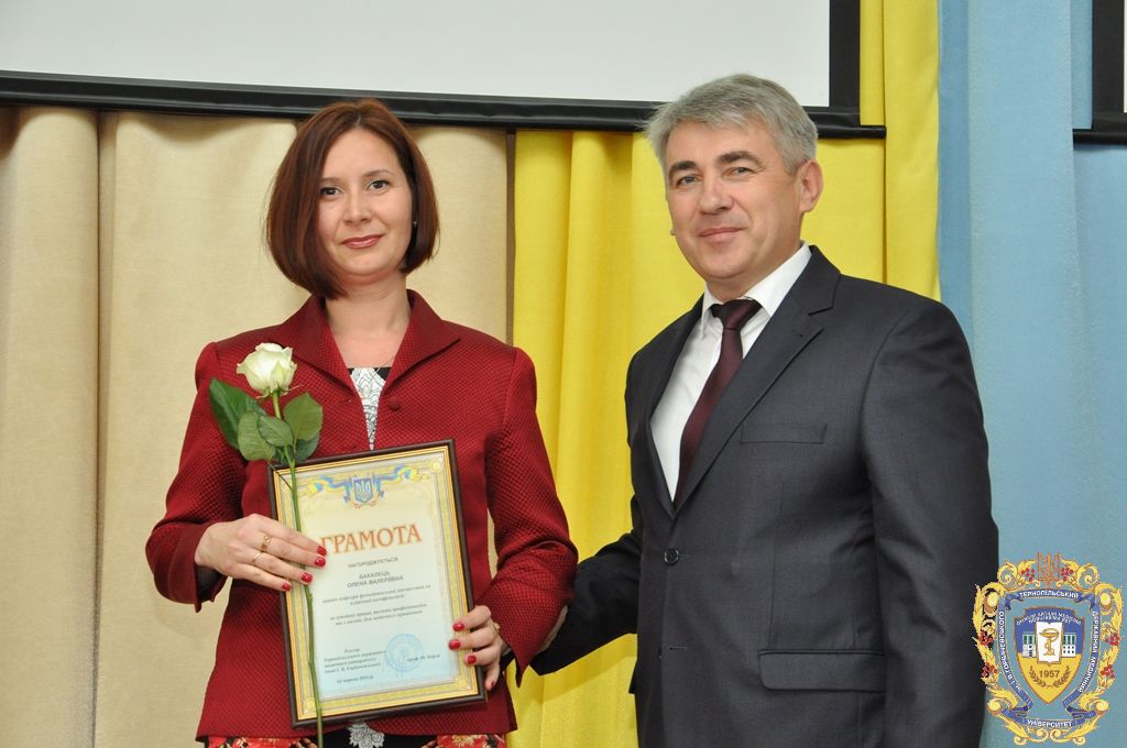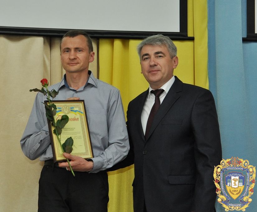 За активну громадську позицію, сумлінну працю, високий професіоналізм, активну участь в АТО та з нагоди Дня медичного працівника грамоти від адміністрації університету та премії від первинної профспілкової організації ТДМУ отримали доцент кафедри травматології та ортопедії з комбустіологією Ігор Кулянда, випускниця університету Тетяна Потупалова, доцент кафедри дитячих хвороб з дитячою хірургією Тамара Воронцова. Нагороди працівників університету, які перебувають сьогодні у зоні бойових дій, зокрема доцент кафедри онкології, променевої діагностики і терапії та радіаційної медицини Мирослав Домбрович, асистент кафедри мікробіології, вірусології та імунології Микола Винничук, інженер Андрій Галаван, оператор Ігор Форисюк, водій Володимир Марховський, отримали їхні родичі.