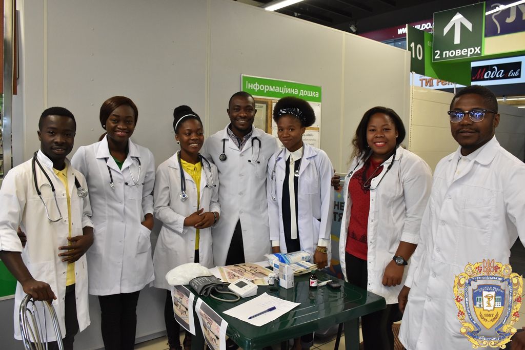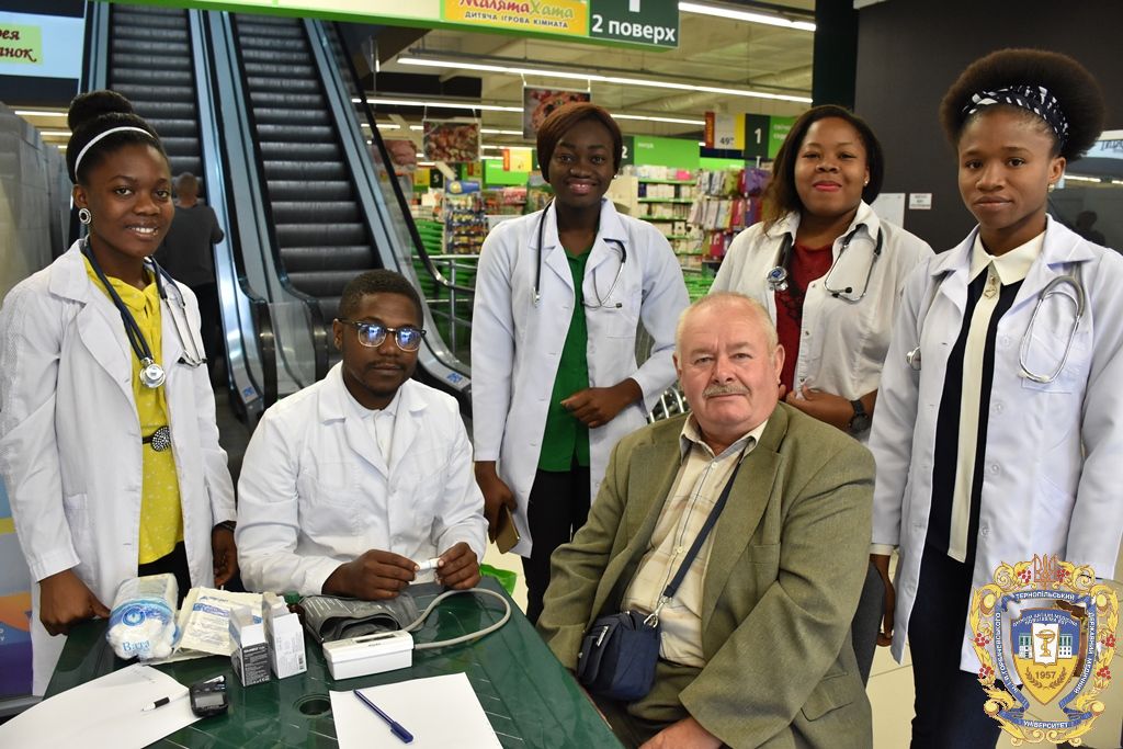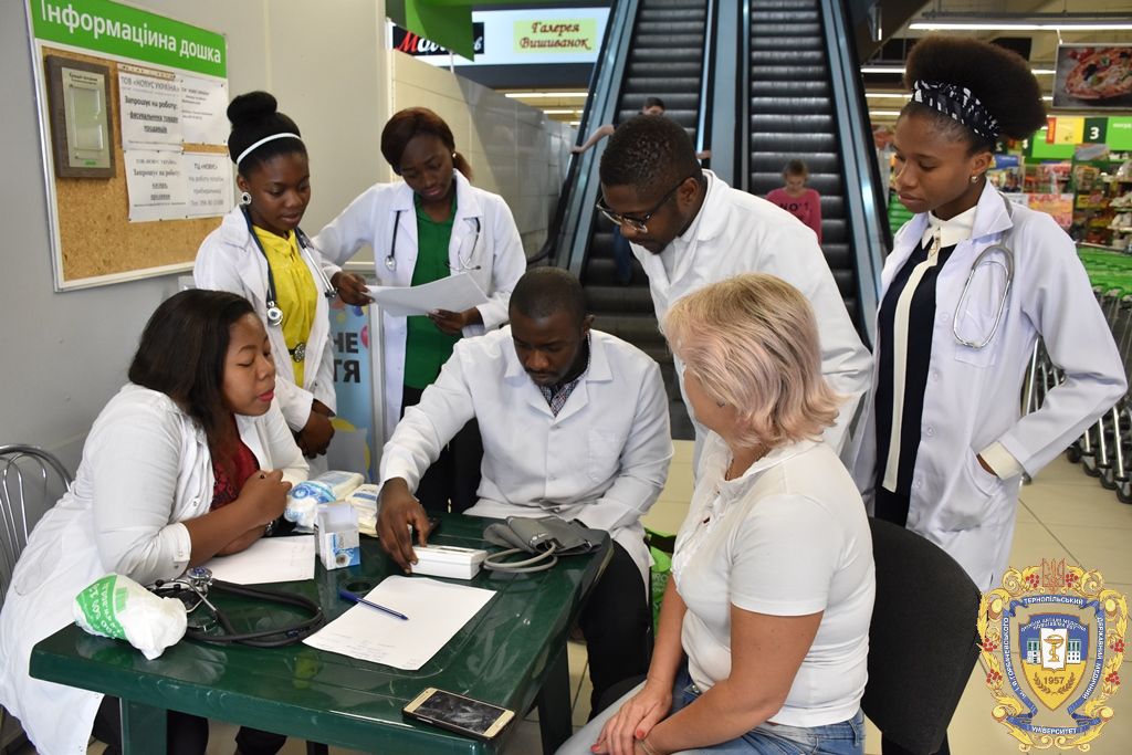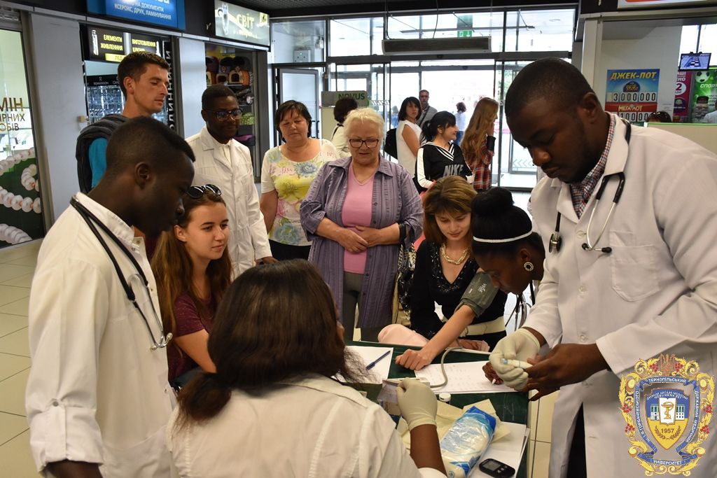Іноземні студенти Тернопільського державного медичного університету імені І.Горбачевського, які входять до громадської організації «Medicare and Social Welfare Initiative» (MEDCASOWI), 18-27 липня у торговому центрі «Новус» організували благодійну акцію. Щоденно з 10.00 до 15.00 вони вимірюють усім бажаючим артеріальний тиск і рівень глюкози у крові. Ця ініціатива викликала чимале захоплення в тернополян і вони з задоволенням підходять до медичного куточка, аби перевірити свій стан здоров’я.