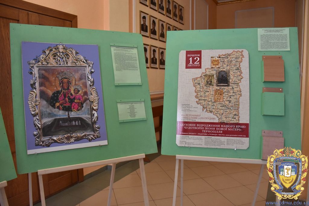 Виставка ікон, які пережили не одну війну, та ті, що визнані чудодійними, розпочала свою роботу в Тернопільському державному медичному університеті імені І.Горбачевського 18 жовтня цього року. Діятиме експозиція упродовж двох тижнів. Загалом представлено 21 чудотворний образ, короткий опис історії до кожного з них та молитовне намірення. Експозиція створена в рамках проекту «Громада і місто».