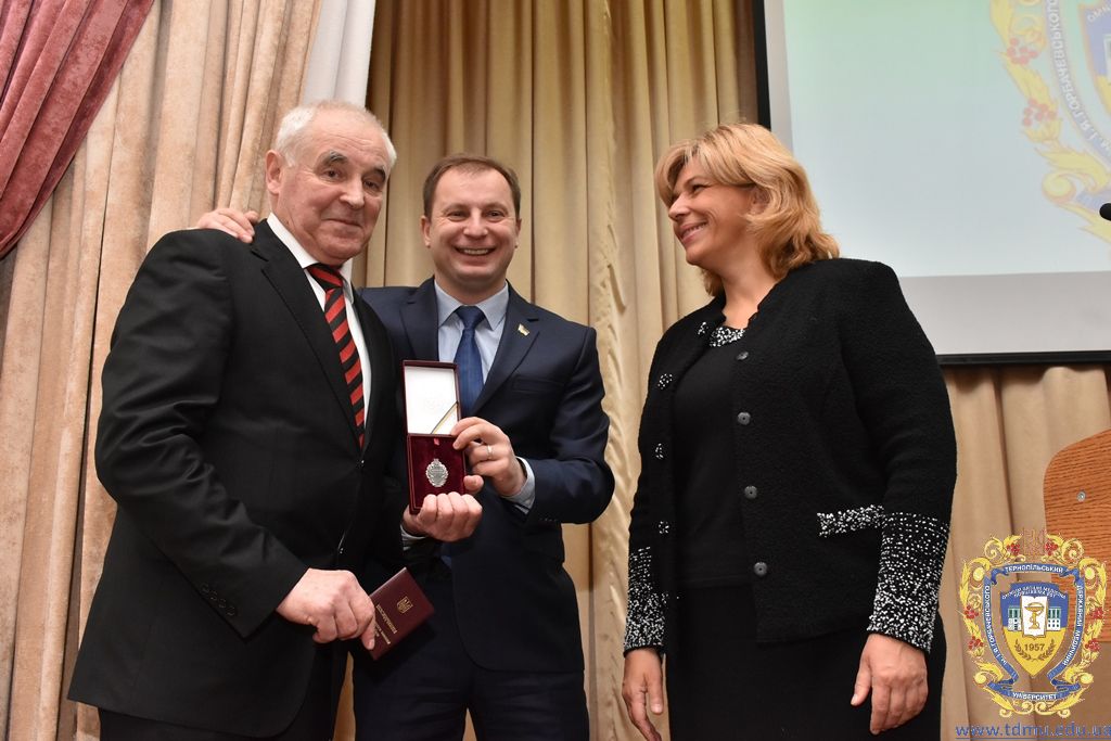 Перед початком роботи Ольга Богомолець та голова Тернопільської облдержадміністрації Степан Барна виконали почесну місію – вручили професору ТДМУ Михайлу Гнатюку документи та нагрудний знак, що засвідчують присвоєння звання заслуженого працівника освіти України.