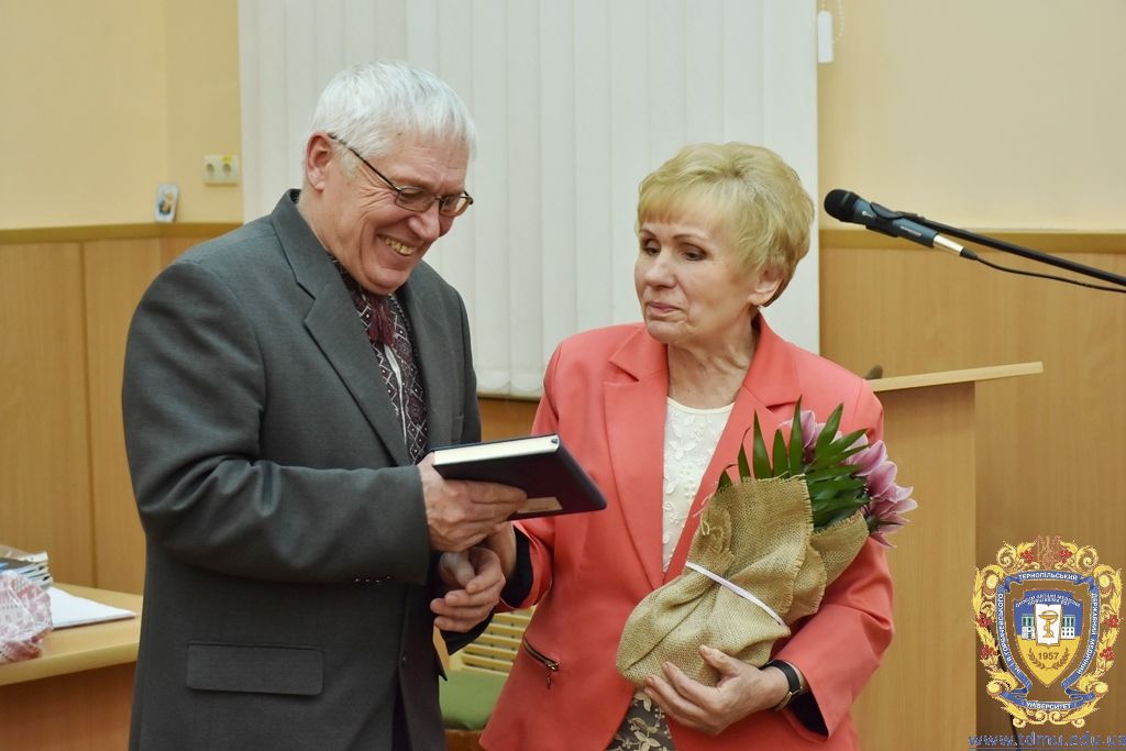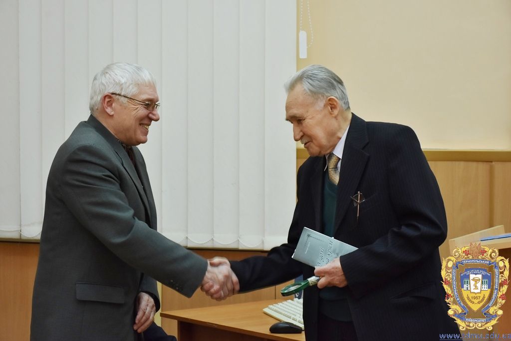 Плідного творчого довголіття бажали своєму колезі і другу професор кафедри загальної гігієни Володимир Кондратюк та Мирослав Закалюжний, який свого часу завідував кафедрою іноземних мов ТДМУ.