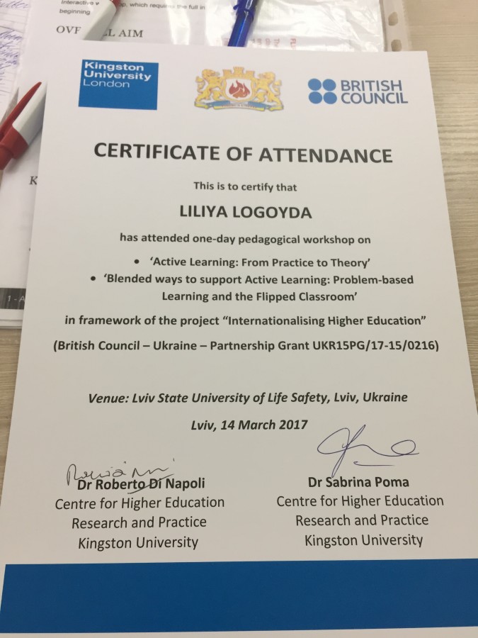 Семінари відбулися за участю досвідчених сертифікованих британських тренерів – Роберто Наполлі та Сабріни Пома (Кінгстонський університет, Великобританія). Усі учасники отримали відповідні сертифікати, що засвідчують їхню участь у тренінгах.
