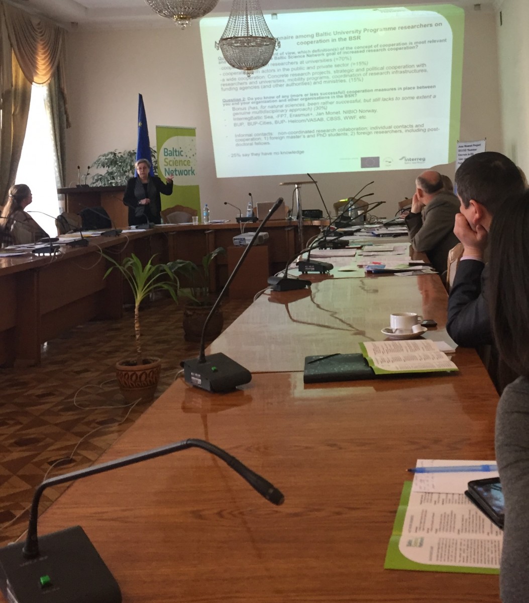 У рамках зустрічі, на якій були присутні Мадлен Гренвік – директор Балтійської університетської програми (Швеція), Марія Хейна – галузевий менеджер Балтійської університетської програми (Швеція), Паула Ліндроос – директор центру (Фінляндія), Бернд Делаковіч – директор центру (Німеччина), Яна Кодімова –директор центру (Чеська Республіка), Александр Цехер – директор центру (Словацька Республіка), Лінас Клюцінінкас – директор центру (Литва), Ірина Кріба – директор центру (Україна), було проведено міжнародний воркшоп, на якому Паула Ліндроос представила основні принципи проекту «Baltic Science Network» щодо вирішення питання пошуку партнерів у сфері екологічного менеджменту та управління, питань сталого розвитку та демократії в регіоні Балтійського моря.