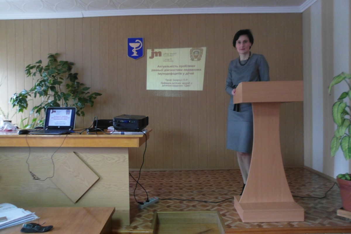 У рамках реалізації проекту щодо покращання діагностики первинних імунодефіцитів у дітей Тернопільської області та за підтримки гранту Jeffrey Modell Foundation для лікарів-педіатрів та лікарів загальної практики – сімейної медицини під час виїздів були прочитані лекції «Проблеми ранньої діагностики первинних імунодефіцитів у дітей» (проф. Боярчук О.Р., доц. Волянська Л.А); «Імунодефіцити з дефектами антитілоутворення в практиці лікаря першого контакту» (проф. Боярчук О.Р.), «Синдроми з порушенням репарації ДНК у практиці лікаря першого контакту» (доц. Кінаш М.І.). Проблема первинних імунодефіцитів викликала зацікавленість у лікарів, лекції часто супроводжувалися дискусіями.