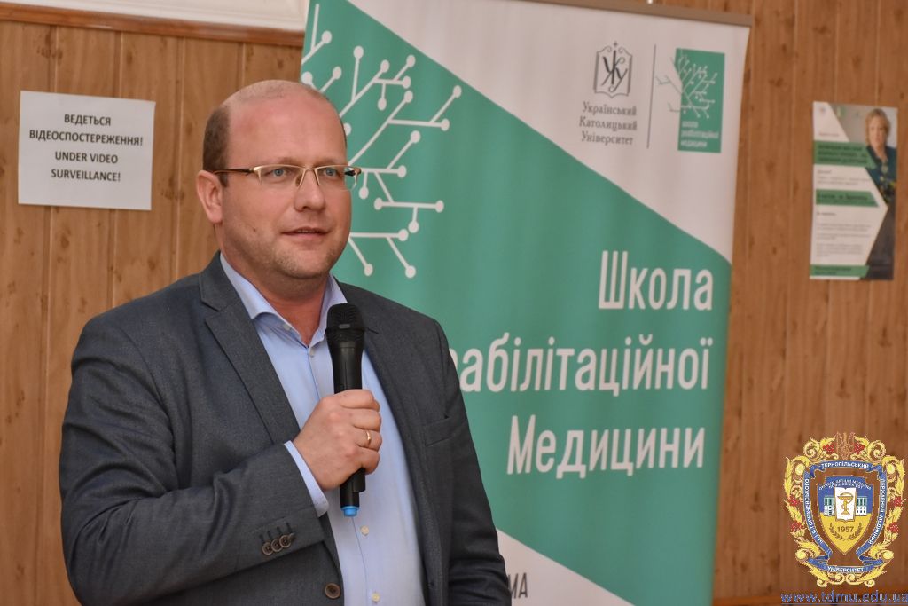 Своїм досвідом також поділився директор школи реабілітаційної медицини УКУ, головний позаштатний спеціаліст Міністерства охорони здоров’я України з спеціальності «Фізіотерапія. Медична реабілітація» Володимир Голик.