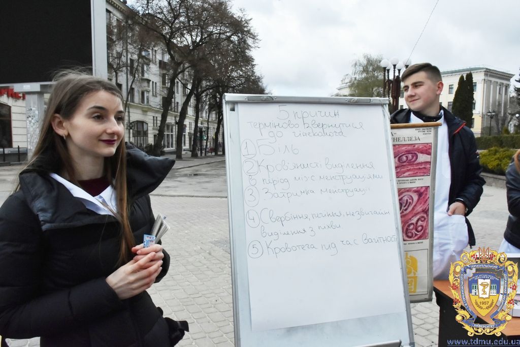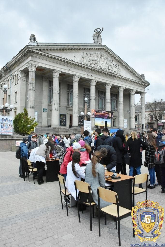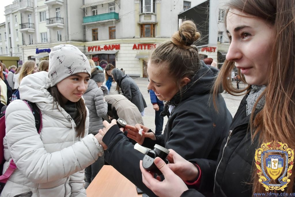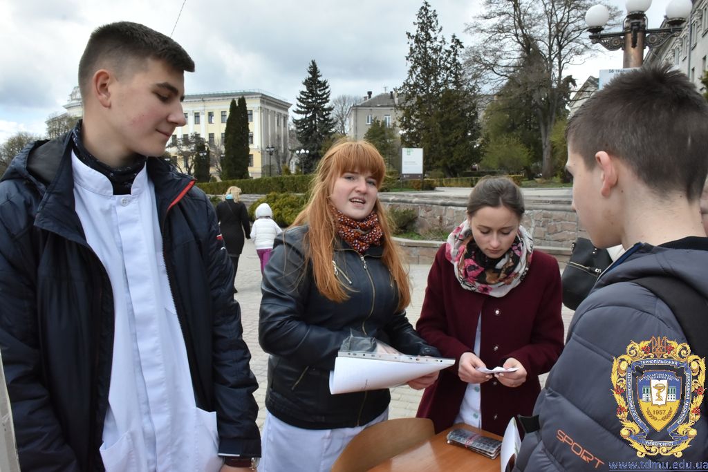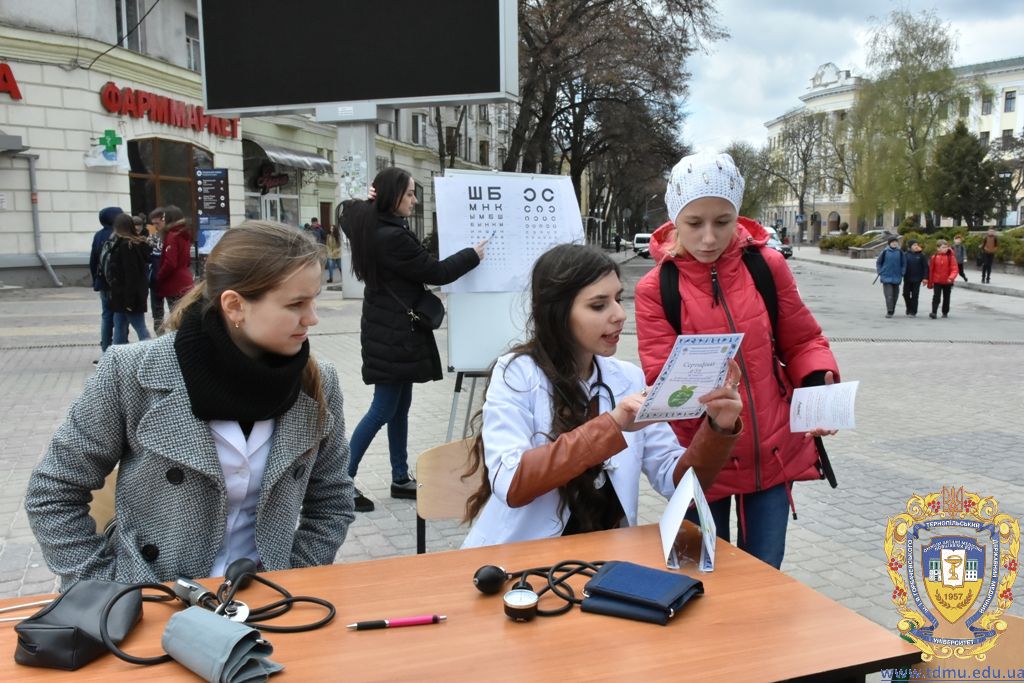 Студенти Тернопільського державного медичного університету – активні учасники і організатори загальноміських заходів, присвячених темі здоров’я. Зокрема нещодавно на Театральному майдані студенти-медики спільно з Тернопільським міським центром здоров’я та Товариством «Червоний Хрест» організували акцію, під час якої вчили громадян міста вести здоровий спосіб життя, робили певні обстеження.