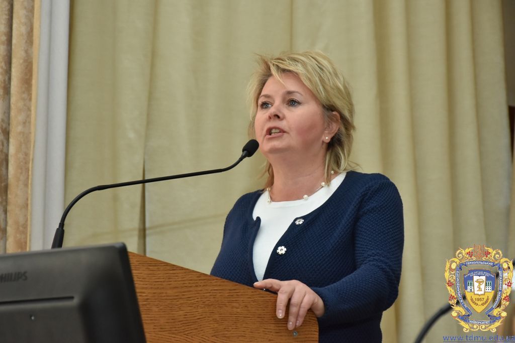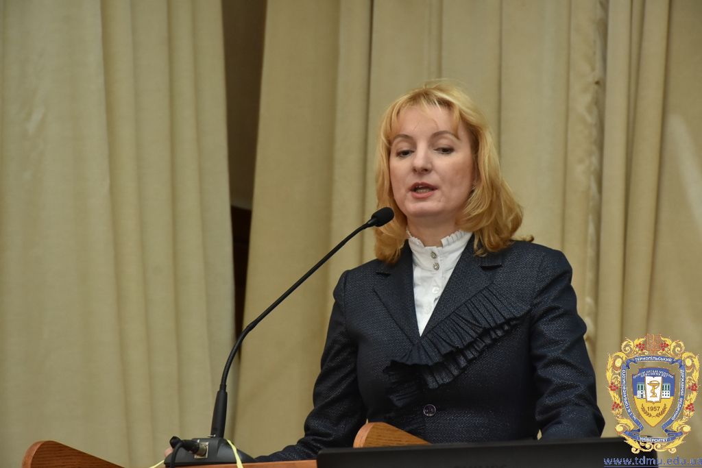 Заступник начальника управління охорони здоров’я Тернопільської облдержадміністрації з лікувальної роботи Тетяна Скарлош наголосила на актуальності теми конференції. Вона побажала всім учасникам плідної роботи і успіхів на професійній ниві.