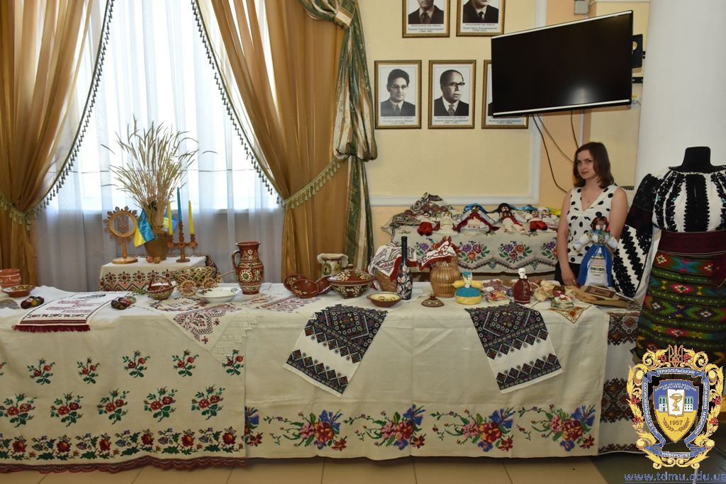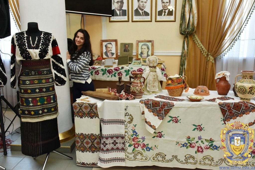 Перед урочистим відкриттям заходу у вестибюлі діяла експозиція автентичних українських строїв, вишивки, предметів народного вжитку. Гості з інших міст мали можливість ознайомитися з багатою культурною спадщиною нашого краю. Неповторними борщівськими строями присутні милувалися завдяки відомій у нашому місті та Україні колекціонерці Вірі Матковській, яка люб’язно надала народний одяг для цього заходу. Викладач ТДМУ Орися Смачило забезпечила виставку вишитими власноруч рушниками, народним глиняним посудом та іншими предметами з українського побуту. Нагадаємо, що пані Орися багато років поспіль під час Міжнародних літніх студентських шкіл організовує етнографічні виставки та проводить майстер-класи для учасників заходу. Завдяки їй молодь з різних міст України та інших країн глибше пізнає наші традиції.