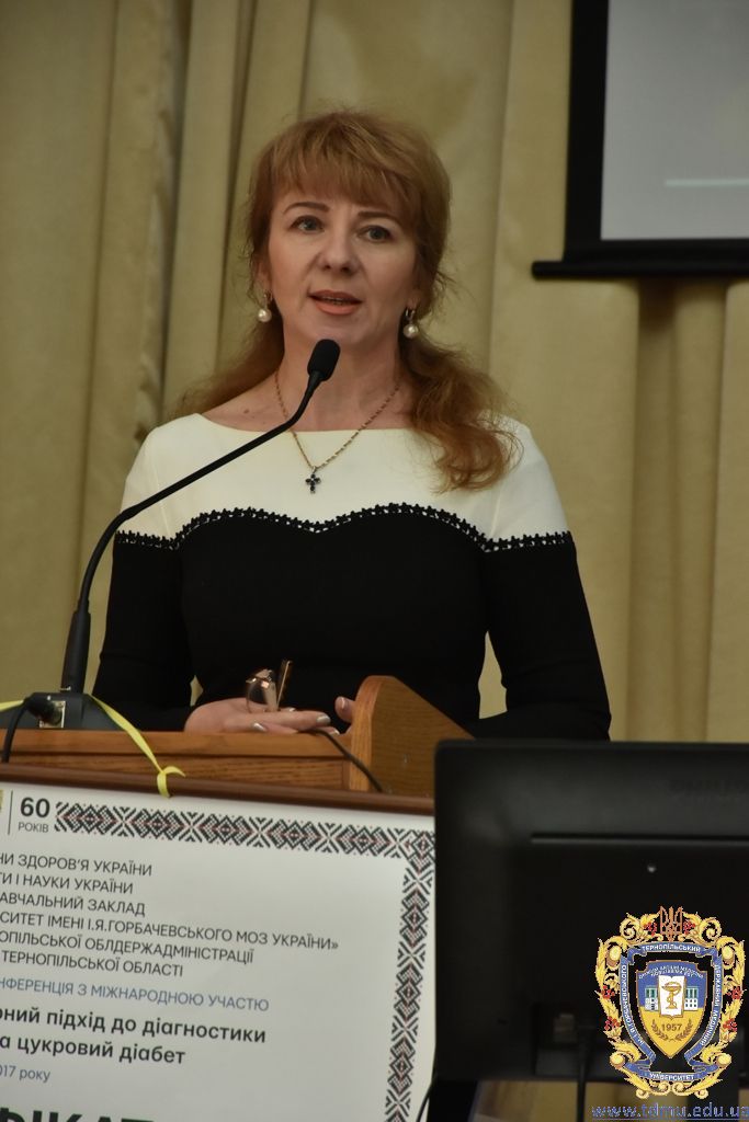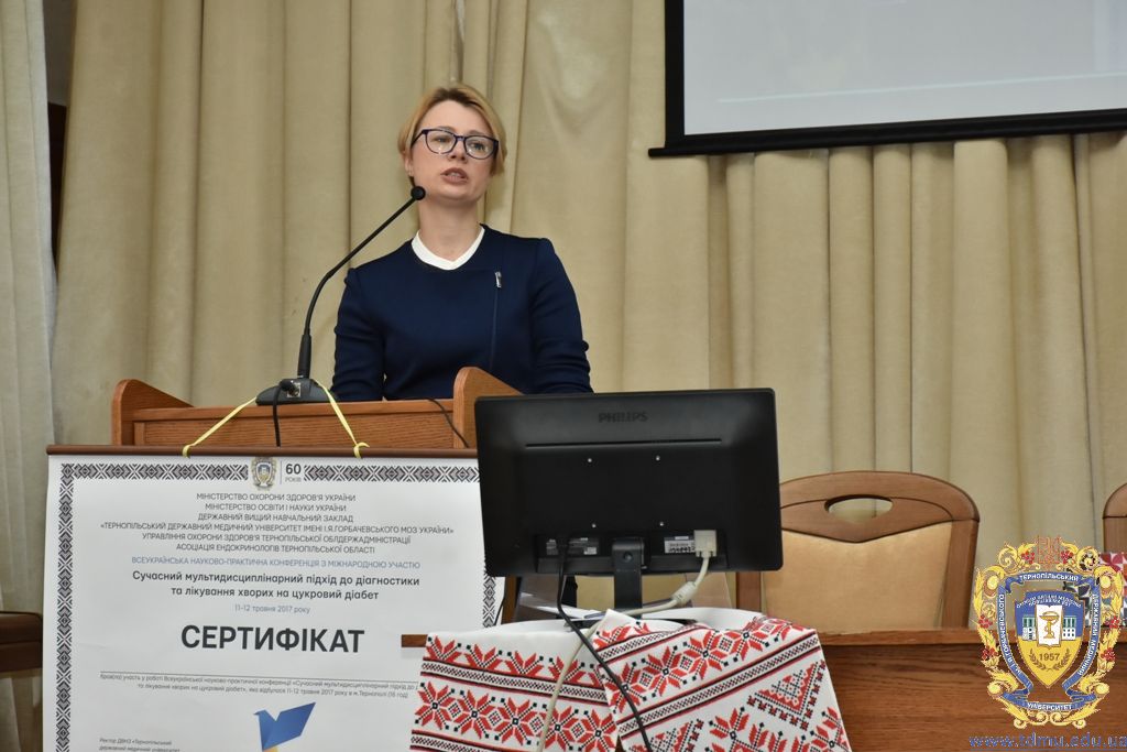 Головний спеціаліст управління охорони здоров’я Тернопільської облдержадміністрації Лариса Матюк привітала учасників конференції. Вона звернула увагу на те, що захворювання на цукровий діабет спричиняє значні ускладнення для здоров’я пацієнта, призводить до інвалідизації. За її словами, ендокринні патології посідають 6 місце в загальній захворюваності і кожна третя людина страждає на цукровий діабет.