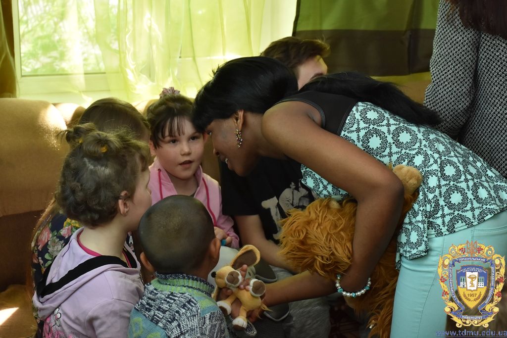 «Спільними зусиллями студентів і викладачів ТДМУ зібрані солодкі гостинці та іграшки для вас, а також цікаві і пізнавальні книги», – звернулася до дітей третьокурсниця медичного факультету Христина Дарморост.