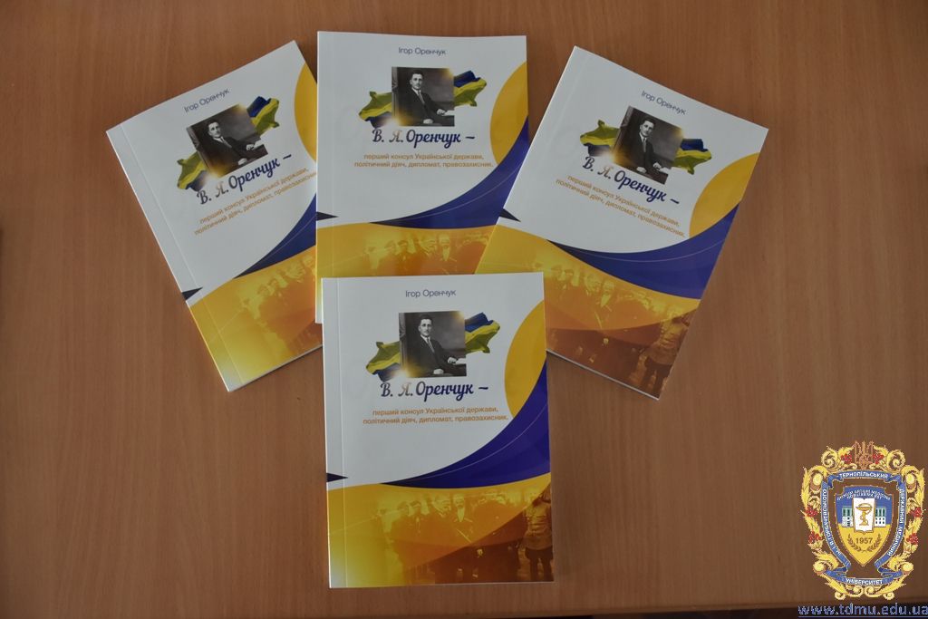 Про свою працю над книгою розповів автор. Ігор Оренчук зазначив, що, ще навчаючись у школі, зацікавився історією свого роду і краю. На першому курсі ТДМУ видав книжечку «Історія роду – історія краю». Це був його літературний дебют. Видання «В.Я.Оренчук – перший консул Української держави, політичний діяч, дипломат, правозахисник» стало другим у доробку Ігоря. Матеріали до нього збирав дуже ретельно. Хлопець висловив подяку всім, хто сприяв її появі на світ, зокрема викладачам кафедри філософії та суспільних наук ТДМУ і, звичайно, своїм батькам, які теж були присутні в залі.