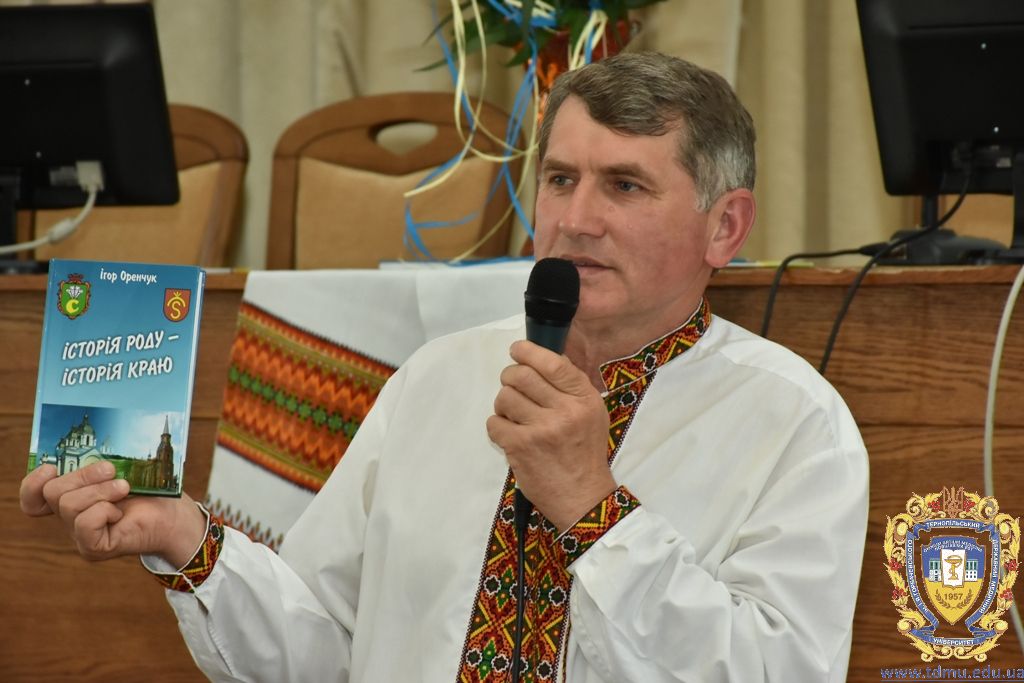 Як зазначила Ірина Миколаївна, викладачі, випускники різних років і студенти ТДМУ почуваються членами єдиної медичної спільноти, що наче одна родина. Її історія нерозривно пов’язана з історією всього українського народу і його славних представників. Про нерозривний зв’язок поколінь свідчить і книга, яку написав студент п’ятого курсу медичного факультету Ігор Оренчук. Вона присвячена першому консулу Української держави та Української Народної Республіки в Мюнхені (1918 – 1921рр.), політичному діячу, дипломату, правозахиснику Василю Яковичу Оренчуку.