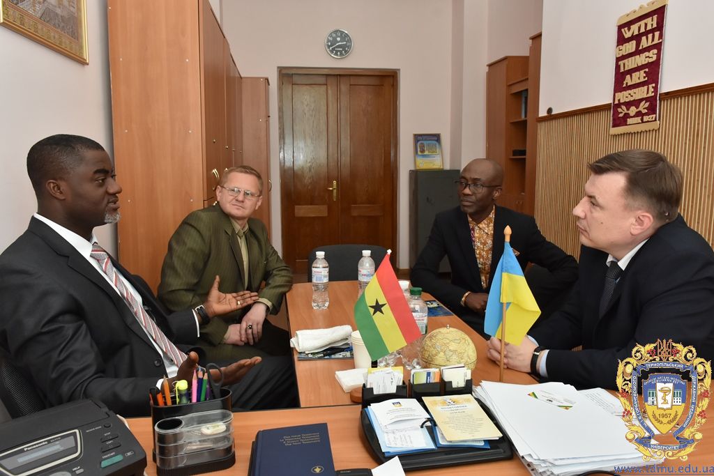 Іноземні гості зустрілися з ректором ТДМУ, професором Михайлом Кордою. Під час зустрічі мова йшла про визнання Тернопільського державного медичного університету імені І.Горбачевського в Гані.