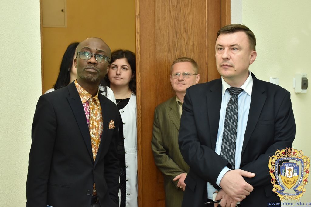 Високоповажна делегація Гани у складі почесного консула, доктора Альберта С.Л.Кітчера, заступника голови Спеціального Комітету охорони здоров’я Парламенту Гани Сабі Вільяма Квасі, члена Парламенту та Спеціального Комітету охорони здоров’я, почесного доктора Куганаб-Лема Роберта Баба, члена Парламенту та Спеціального Комітету охорони здоров’я, почесного доктора Твум-Нуамаха Квабена, члена Правління Медичної і Стоматологічної Ради Гани, професора Абантанги Френсіса Атіндаани, заступника реєстратора Медичної і Стоматологічної Ради Гани, доктора Банюбали Дівіне Ндонбі, керівника навчання Медичної і Стоматологічної Ради Гани Абдулаі Мемунату, працівника Спеціального Комітету охорони здоров’я Фіавоїфе Пеаце 22 травня 2017 року з робочим візитом перебувала в Тернопільському державному медичному університеті імені І.Горбачевського.