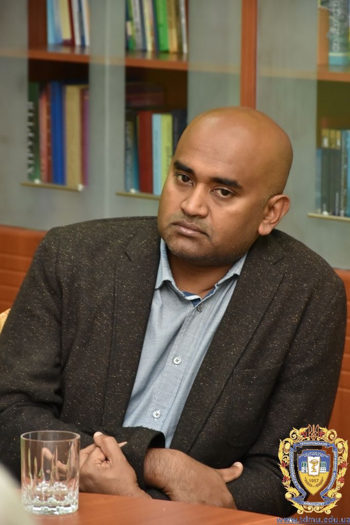 Ректор ТДМУ, професор Михайло Корда також поспілкувався з представником Госпіталю Святого Марка (Великобританія) Джанідрою Варусавітарне (Janindra Warusavitarne).