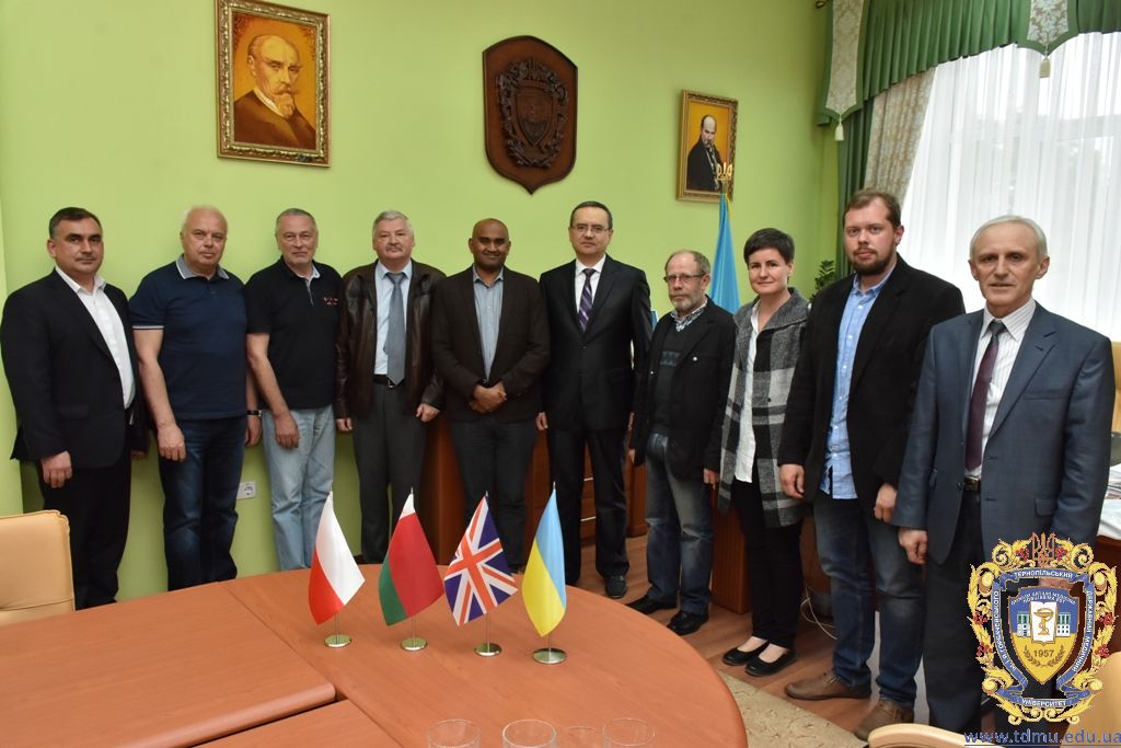 Тернопільський державний медичний університет імені І.Горбачевського 25 травня 2017 року відвідали делегації представників вищих медичних навчальних закладів з Білорусії, Англії та Польщі. Гості зустрілися з ректором ТДМУ, професором Михайлом Кордою, щоб обговорити напрямки подальшої співпраці вишів, участь у реалізації спільних проектів.