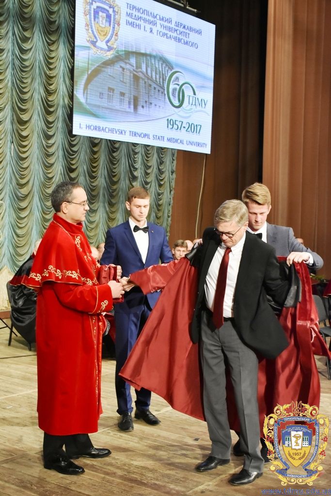 Ректор Державної вищої школи імені Папи Римського Іоанна Павла ІІ (Польща), професор Джозеф Бергер наголосив, що сьогодні має чудову нагоду побачити і поспілкуватися з колегами і партнерами в галузі вищої освіти. «Хочу сказати, що 10 років тому медичний університет в Тернополі і наш вищий навчальний заклад підписали угоду про співпрацю. Для мене це велика честь як для науковця отримати титул почесного професора. Переконаний в поглибленні нашої подальшої співпраці. І зараз хочу сказати, як особа, яка свого часу працювала в парламенті та є учасником двох професійних товариств, що докладу всіх зусиль для того, щоб дружбу між нашими народами зміцнювати», – запевнив Джозеф Бергер.