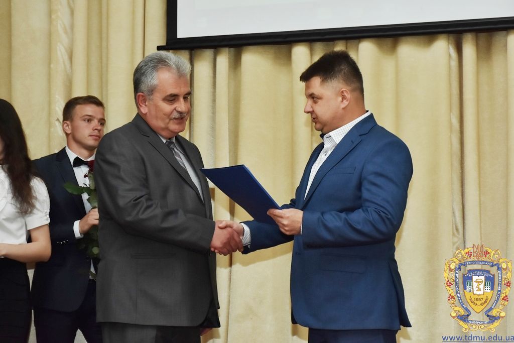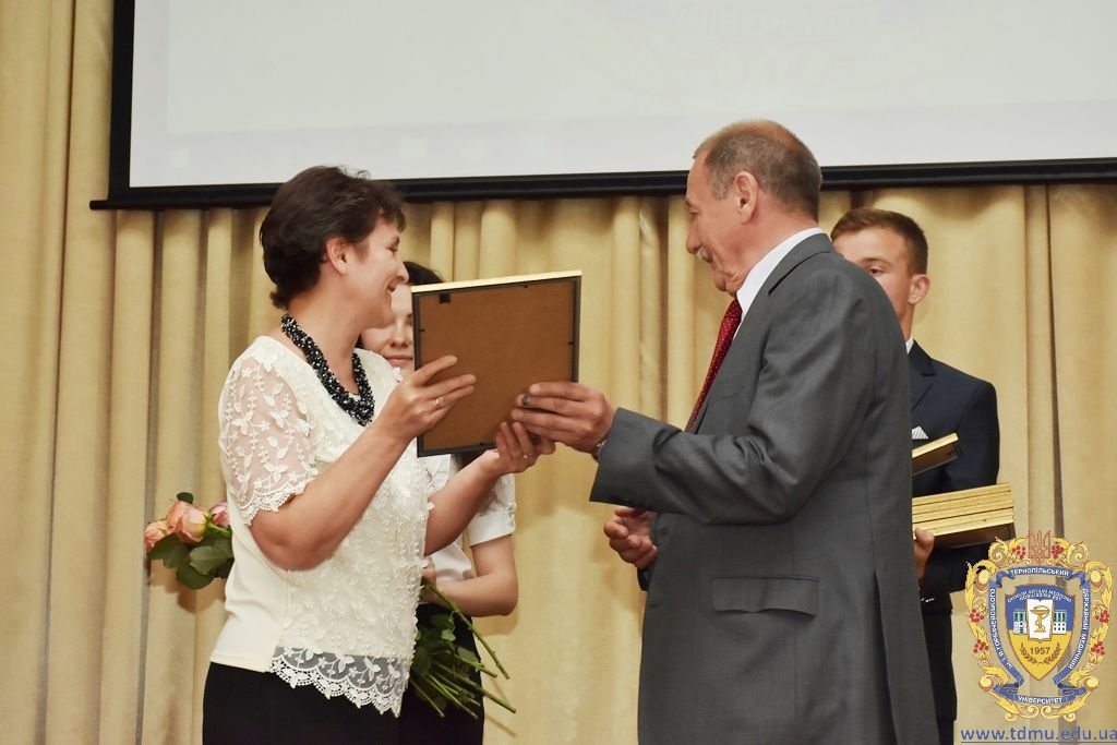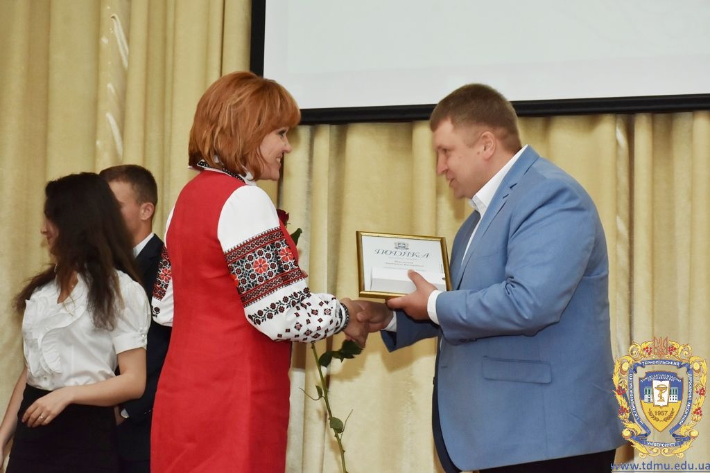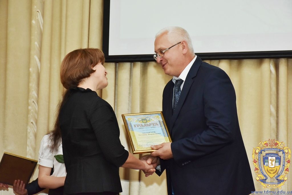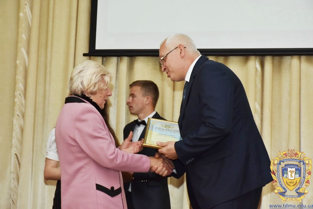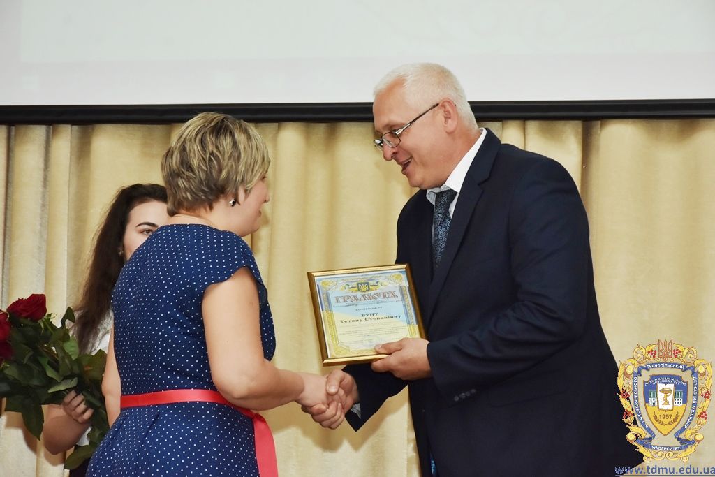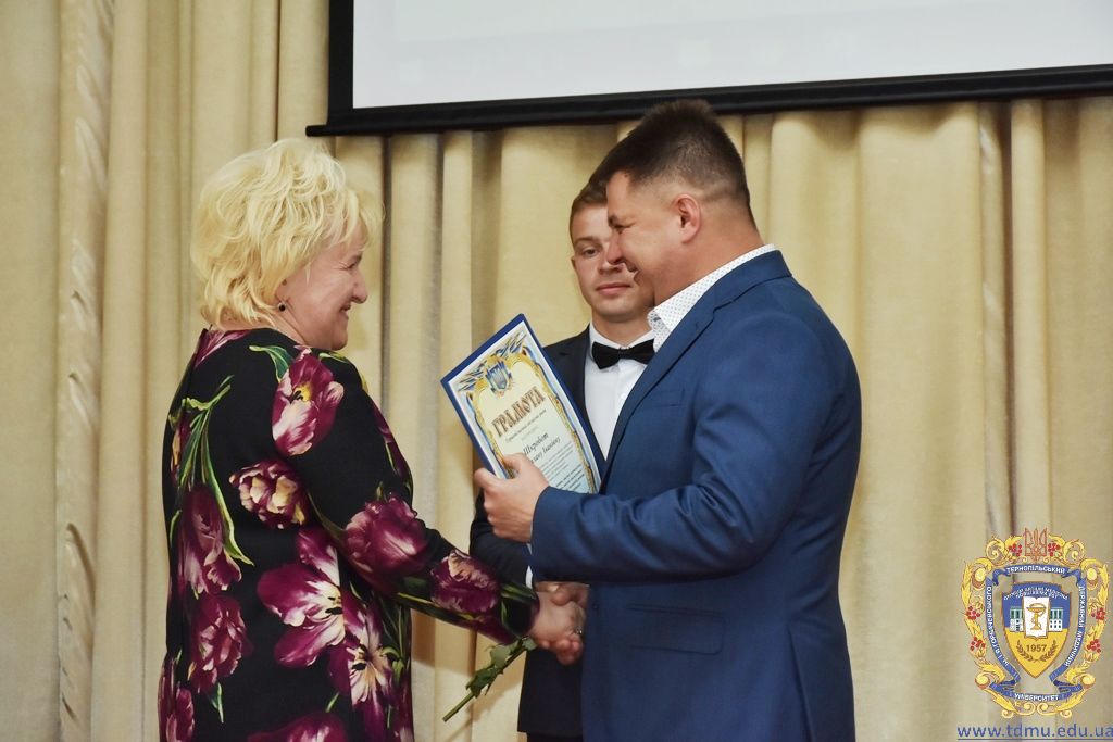 За багаторічну сумлінну працю, високий професіоналізм, активну громадську позицію з нагоди Дня медичного працівника грамоти ТДМУ вручив ректор університету, професор Михайло Корда. Їх отримали асистент кафедри мікробіології, вірусології та імунології Валентина Борак, асистент кафедри клінічної імунології, алергології та загального догляду за хворими Ольга Буштинська, виконроб Валерій Галустян, комендант навчального корпусу №3 Ярослав Гащук, заступник директора навчально-наукового інституту медсестринства Світлана Даньчак, провідний фахівець відділу інформаційних технологій Ігор Ковбасюк, асистент кафедри гістології та ембріології Соломія Крамар, асистент кафедри хірургії №2 Ігор Лойко, завідувач університетським складом Христина Марцінковська, асистент кафедри хірургічної стоматології Ірина Міц, інспектор деканату фармацевтичного факультету Тетяна Обрусняк, асистент кафедри невідкладної та екстреної медичної допомоги Олена Прокопович, асистент кафедри медицини катастроф та військової медицини Юрій Слюсаренко, провідний фахівець господарської частини Степан Цупрак.