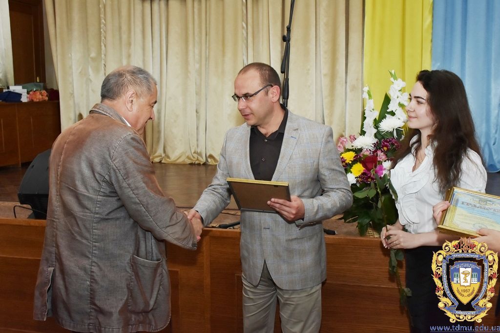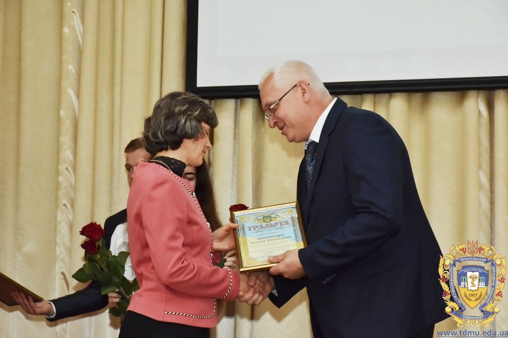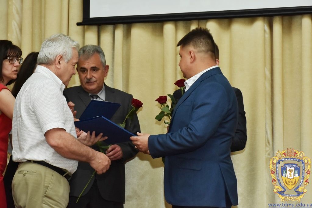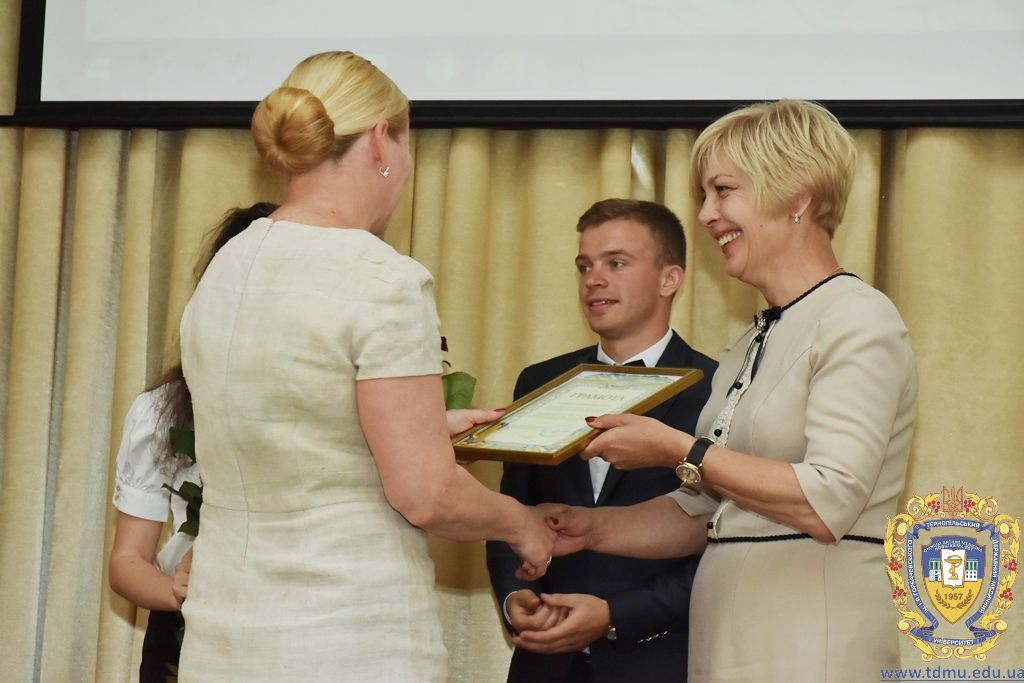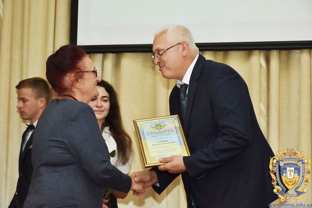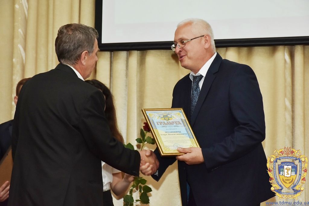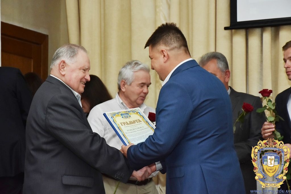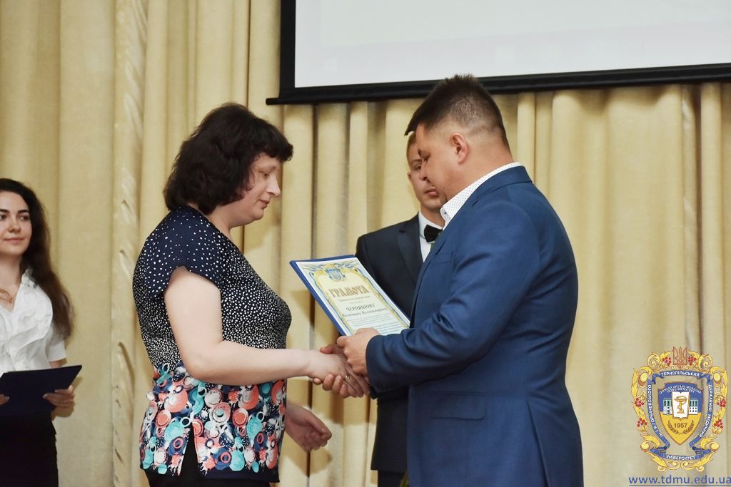 За багаторічну сумлінну працю, високий професіоналізм, активну громадську позицію з нагоди Дня медичного працівника грамоти ТДМУ вручив ректор університету, професор Михайло Корда. Їх отримали асистент кафедри мікробіології, вірусології та імунології Валентина Борак, асистент кафедри клінічної імунології, алергології та загального догляду за хворими Ольга Буштинська, виконроб Валерій Галустян, комендант навчального корпусу №3 Ярослав Гащук, заступник директора навчально-наукового інституту медсестринства Світлана Даньчак, провідний фахівець відділу інформаційних технологій Ігор Ковбасюк, асистент кафедри гістології та ембріології Соломія Крамар, асистент кафедри хірургії №2 Ігор Лойко, завідувач університетським складом Христина Марцінковська, асистент кафедри хірургічної стоматології Ірина Міц, інспектор деканату фармацевтичного факультету Тетяна Обрусняк, асистент кафедри невідкладної та екстреної медичної допомоги Олена Прокопович, асистент кафедри медицини катастроф та військової медицини Юрій Слюсаренко, провідний фахівець господарської частини Степан Цупрак.