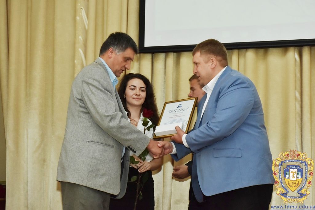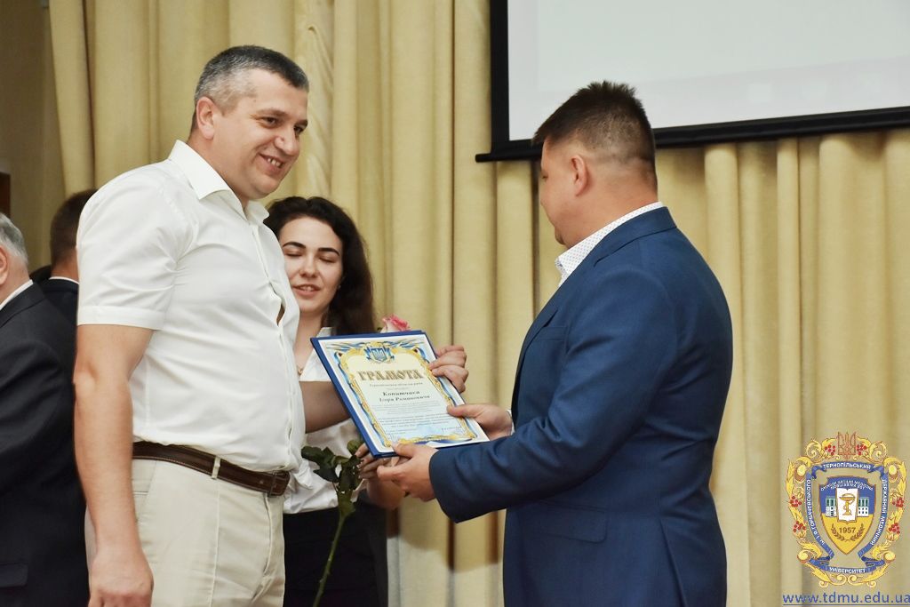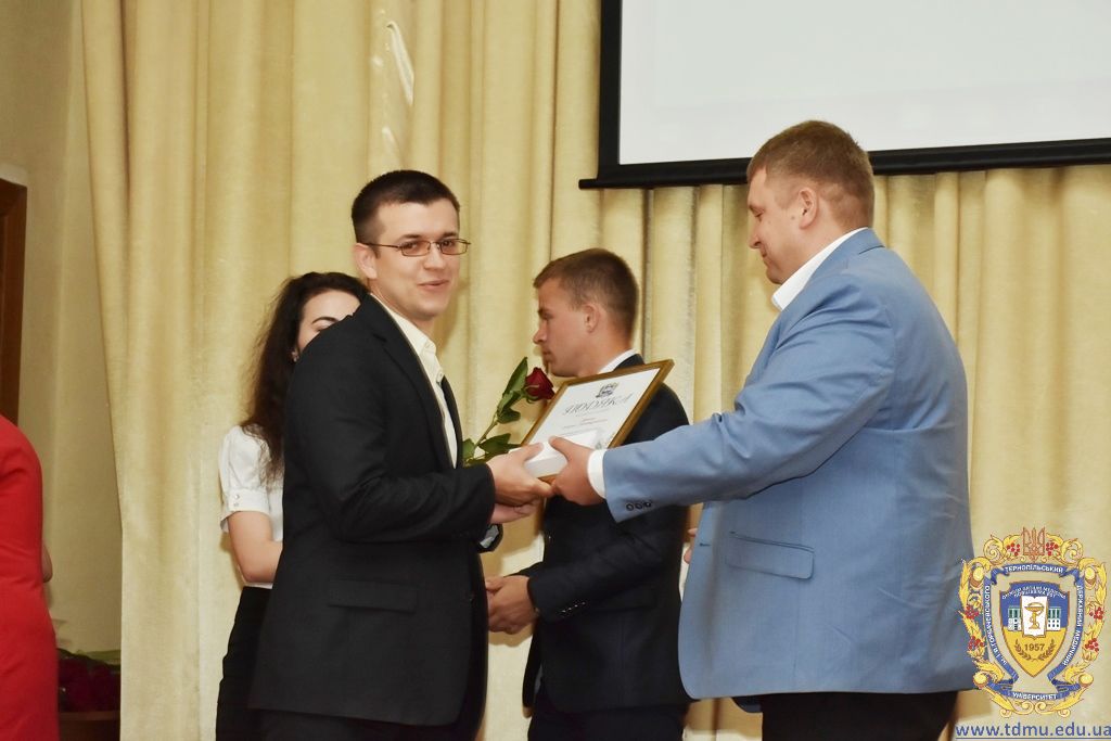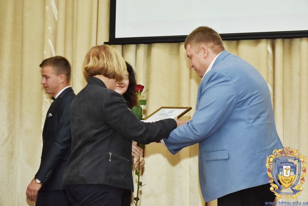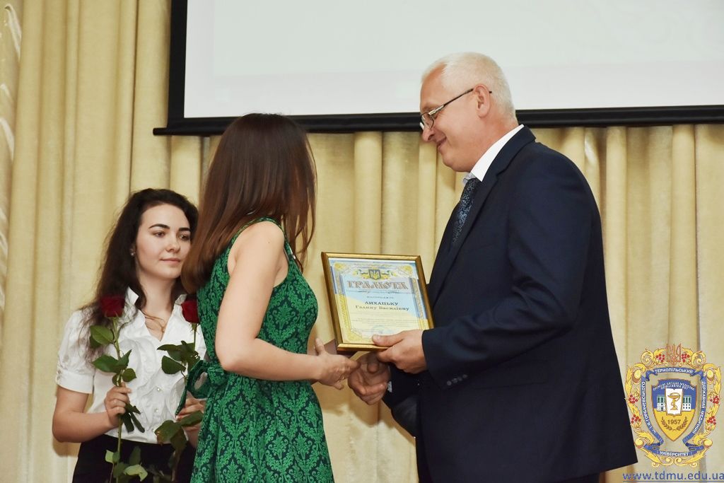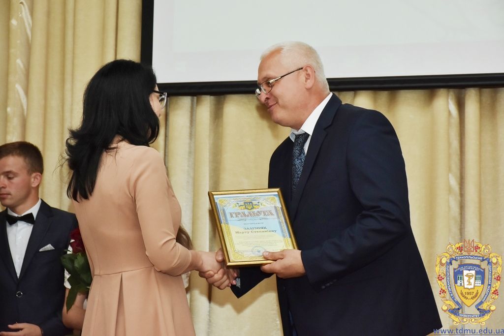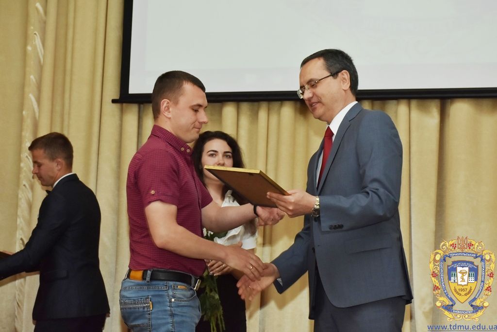 За багаторічну сумлінну працю, високий професіоналізм, активну громадську позицію з нагоди Дня медичного працівника грамоти ТДМУ вручив ректор університету, професор Михайло Корда. Їх отримали асистент кафедри мікробіології, вірусології та імунології Валентина Борак, асистент кафедри клінічної імунології, алергології та загального догляду за хворими Ольга Буштинська, виконроб Валерій Галустян, комендант навчального корпусу №3 Ярослав Гащук, заступник директора навчально-наукового інституту медсестринства Світлана Даньчак, провідний фахівець відділу інформаційних технологій Ігор Ковбасюк, асистент кафедри гістології та ембріології Соломія Крамар, асистент кафедри хірургії №2 Ігор Лойко, завідувач університетським складом Христина Марцінковська, асистент кафедри хірургічної стоматології Ірина Міц, інспектор деканату фармацевтичного факультету Тетяна Обрусняк, асистент кафедри невідкладної та екстреної медичної допомоги Олена Прокопович, асистент кафедри медицини катастроф та військової медицини Юрій Слюсаренко, провідний фахівець господарської частини Степан Цупрак.