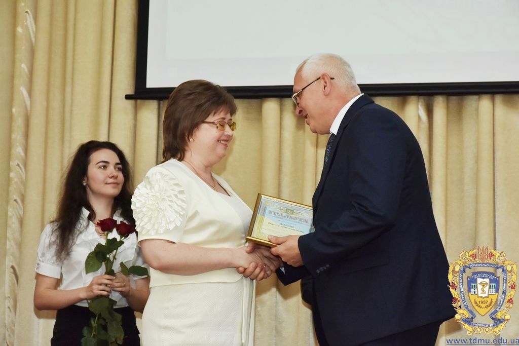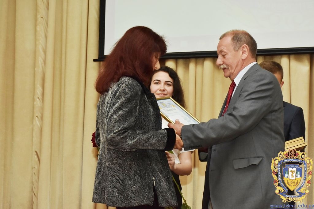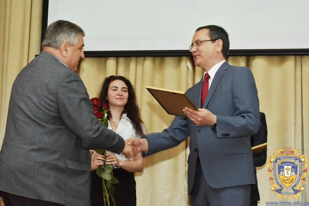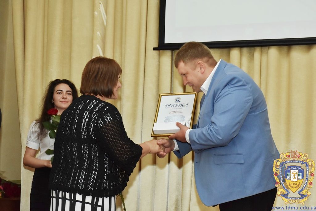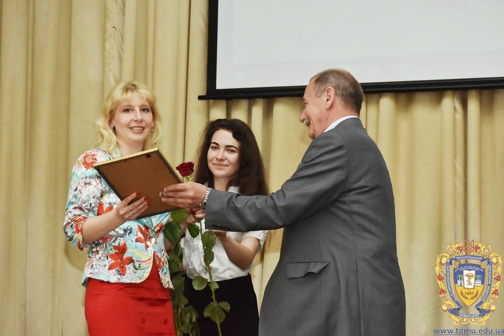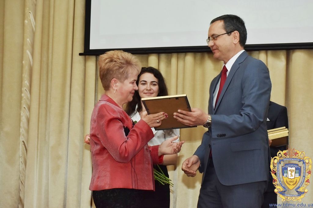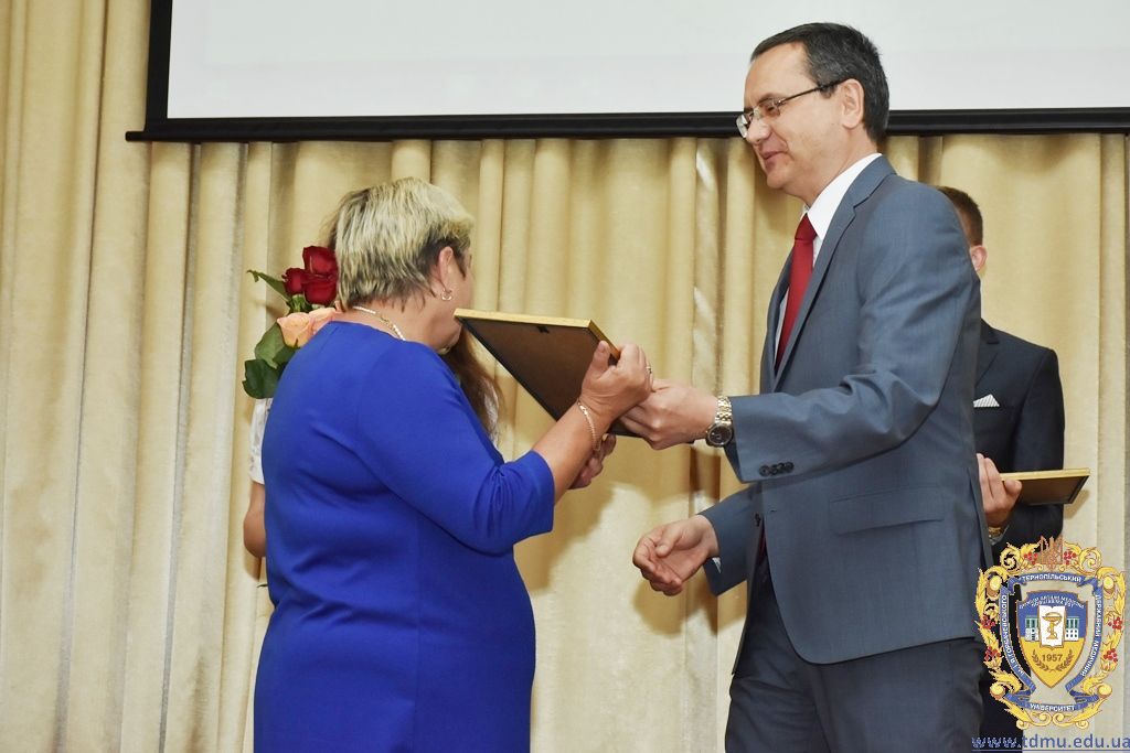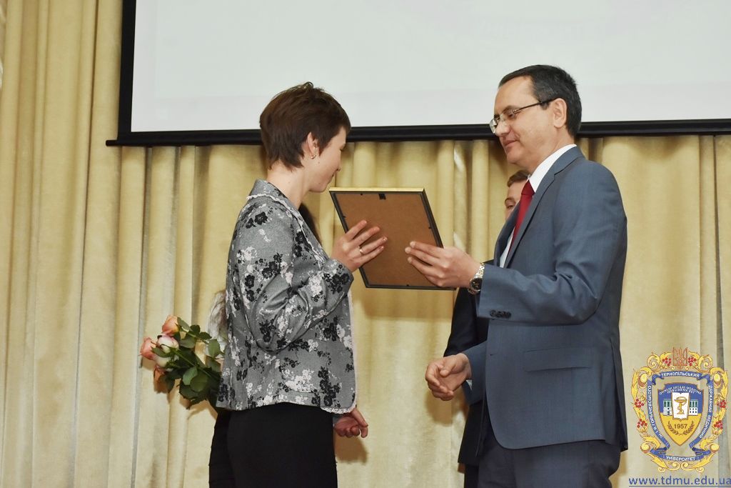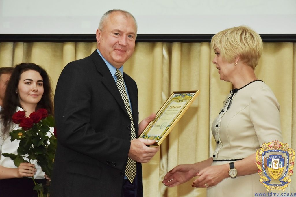 З вітальним словом виступила заступник начальника відділу охорони здоров’я та медичного забезпечення Тернопільської міської ради Ольга Ярмоленко. Вона вручила грамоти відділу доценту кафедри анатомії людини Ігорю Боймиструку, асистенту кафедри загальної хімії Лесі Гнатишиній, доценту кафедри фармакогнозії з медичною ботанікою Ірині Дахим, інспектору деканату медичного факультету Лілії Дедьо, асистенту кафедри патологічної фізіології Олені Кулянді, доценту кафедри клінічної фармації Зої Мандзій, техніку з експлуатації автотранспорту Петру Олійнику, доценту кафедри фармації навчально-наукового інституту післядипломної освіти Оксані Онишків, асистенту кафедри медичної біохімії Лілії Палиці, доценту кафедри філософії та суспільних дисциплін Ользі Христенко, доценту кафедри дитячих хвороб з дитячою хірургією Наталії Щербатюк, лаборанту кафедри дитячої стоматології Оксані Яворській.