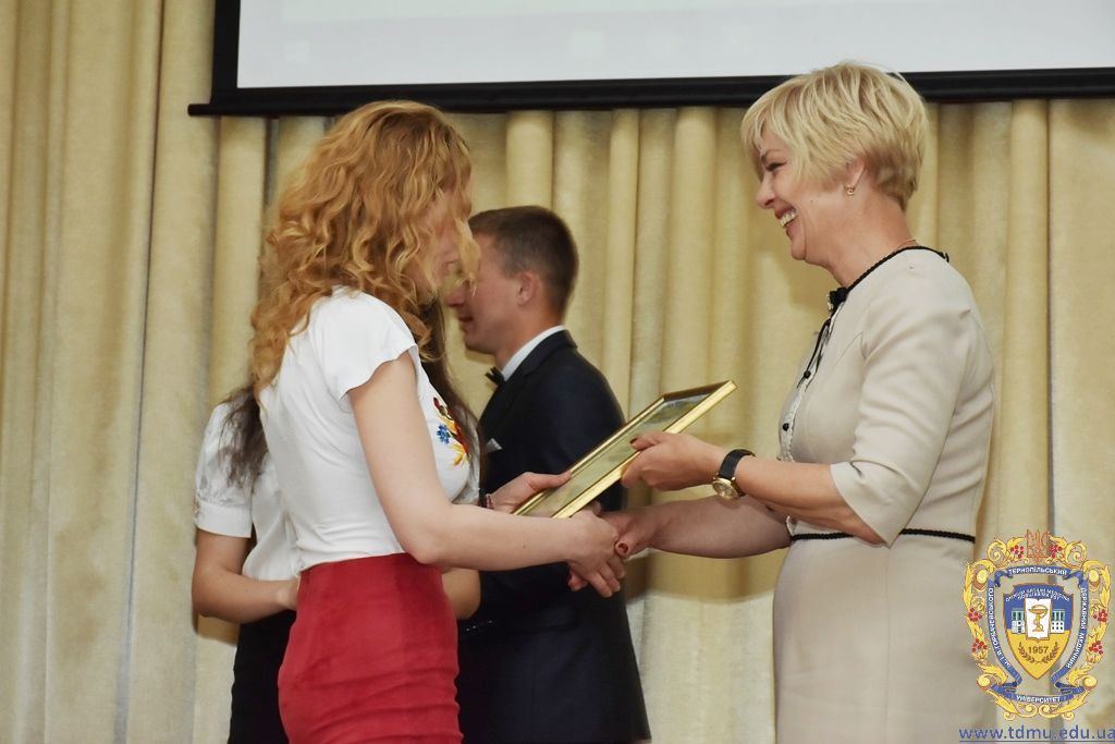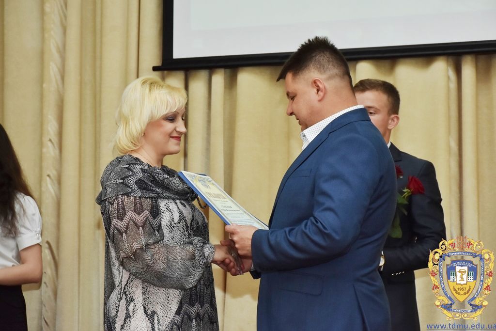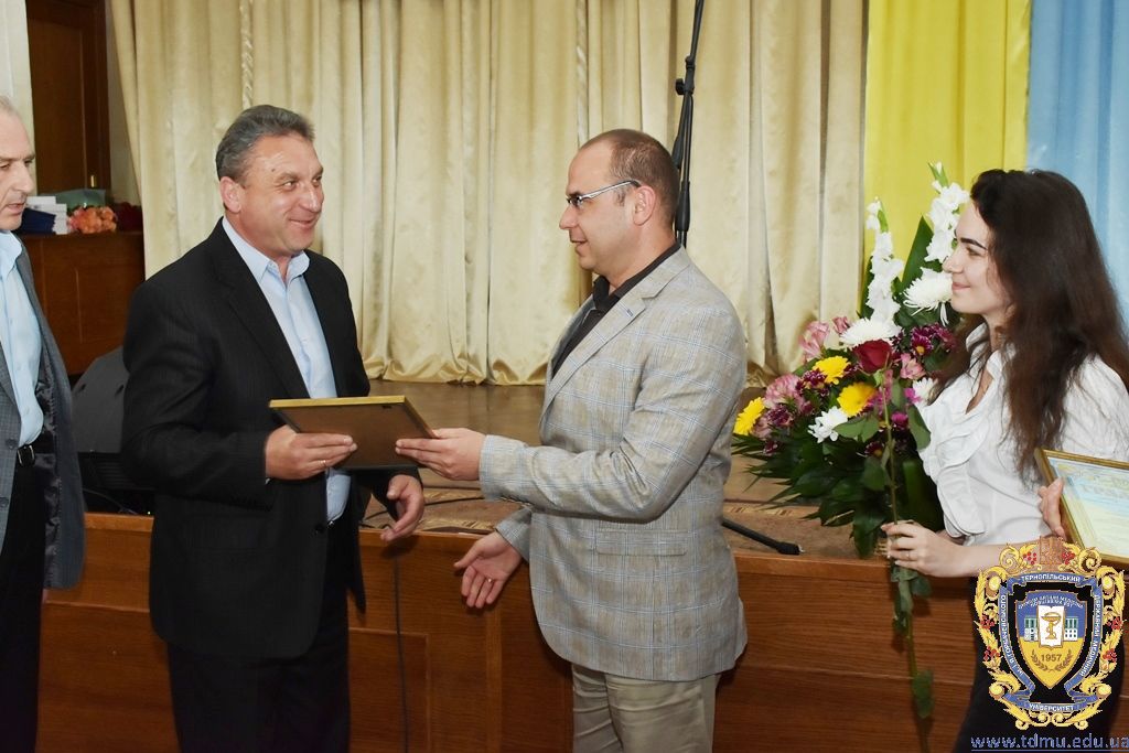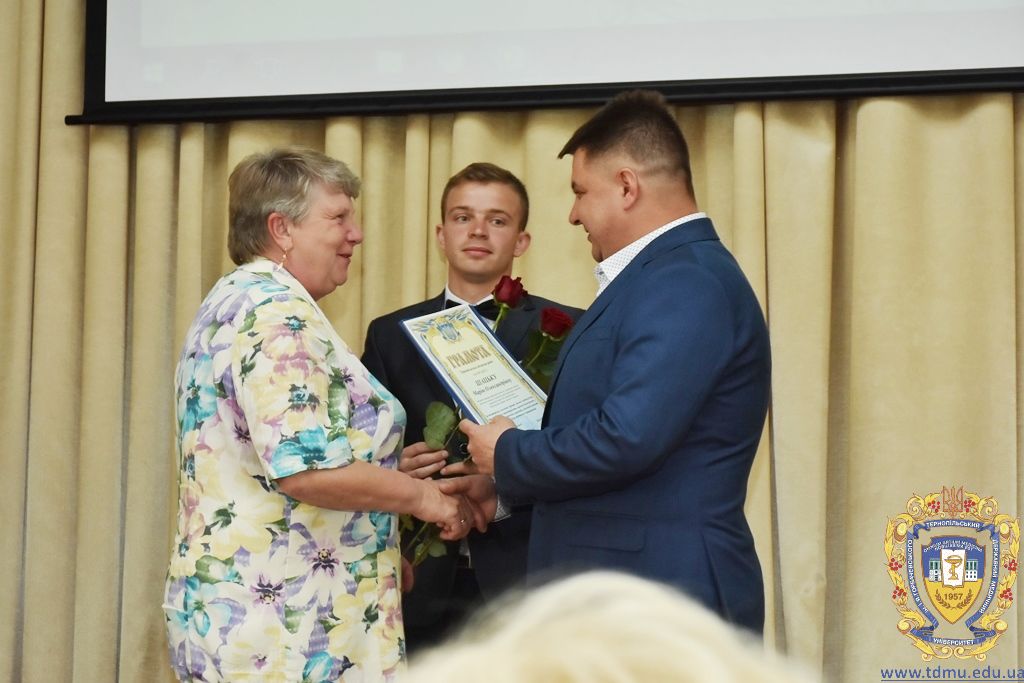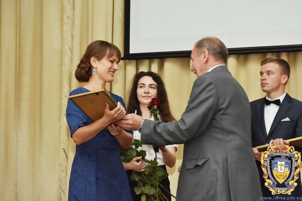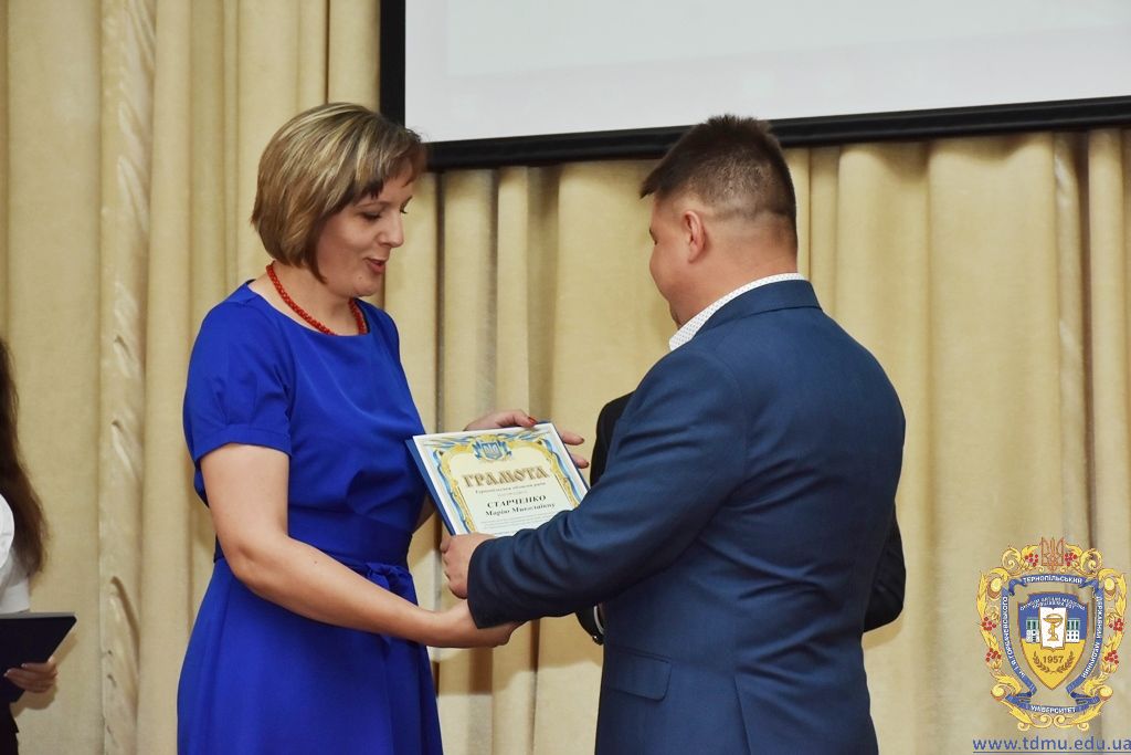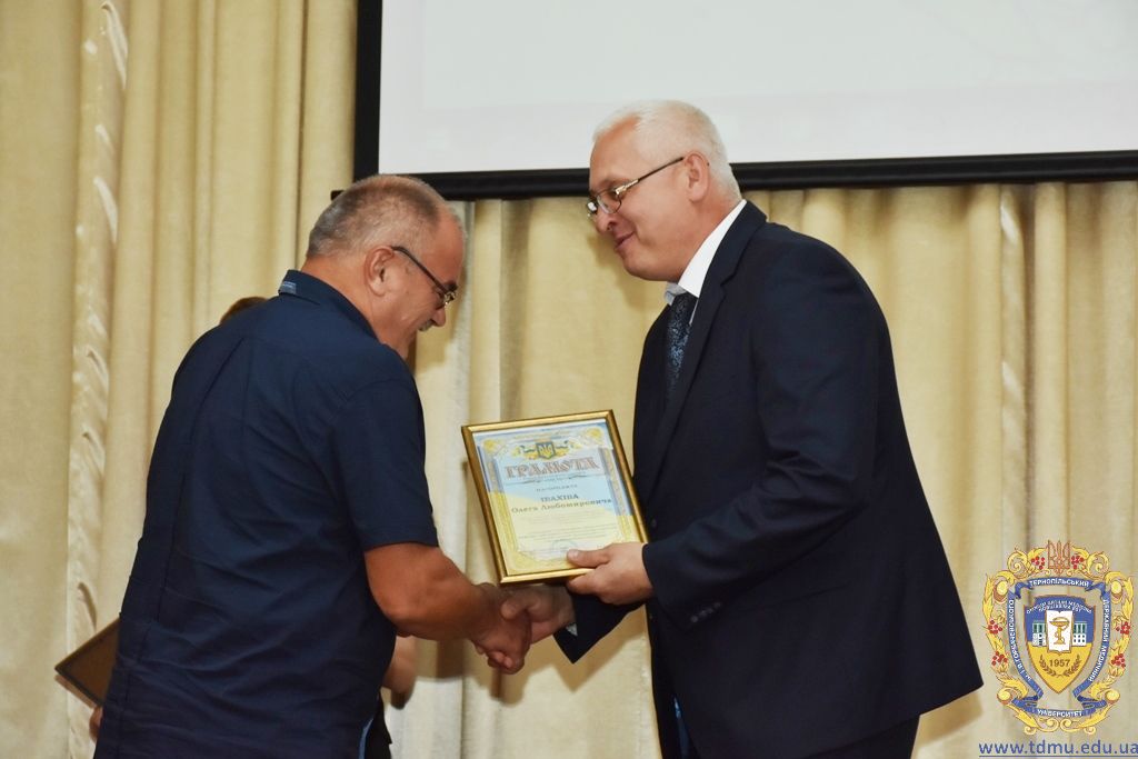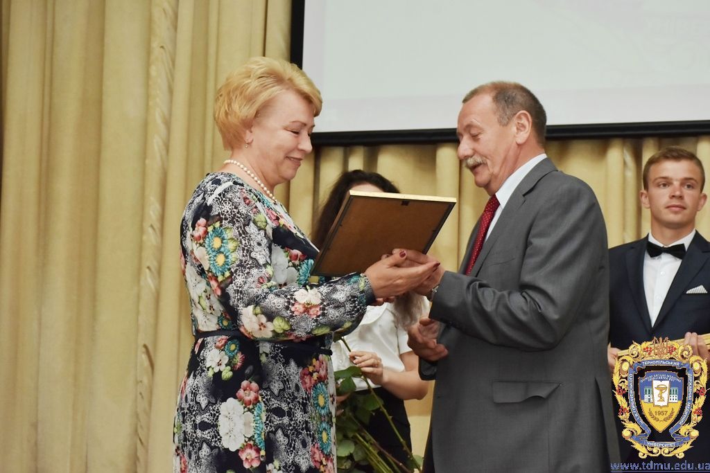 З вітальним словом виступила заступник начальника відділу охорони здоров’я та медичного забезпечення Тернопільської міської ради Ольга Ярмоленко. Вона вручила грамоти відділу доценту кафедри анатомії людини Ігорю Боймиструку, асистенту кафедри загальної хімії Лесі Гнатишиній, доценту кафедри фармакогнозії з медичною ботанікою Ірині Дахим, інспектору деканату медичного факультету Лілії Дедьо, асистенту кафедри патологічної фізіології Олені Кулянді, доценту кафедри клінічної фармації Зої Мандзій, техніку з експлуатації автотранспорту Петру Олійнику, доценту кафедри фармації навчально-наукового інституту післядипломної освіти Оксані Онишків, асистенту кафедри медичної біохімії Лілії Палиці, доценту кафедри філософії та суспільних дисциплін Ользі Христенко, доценту кафедри дитячих хвороб з дитячою хірургією Наталії Щербатюк, лаборанту кафедри дитячої стоматології Оксані Яворській.