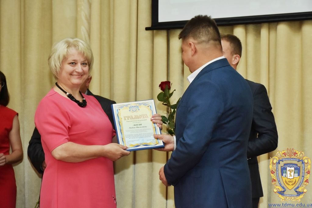 Грамоти Тернопільської обласної ради цього дня отримали завідувач кафедри первинної медико-санітарної допомоги та загальної практики сімейної медицини Лілія Бабінець, завідувач кафедри медичної біоетики та деонтології Наталія Волкова, доцент кафедри хірургії навчально-наукового інституту післядипломної освіти Юрій Герасимець, професор кафедри анестезіології та реаніматології Володимир Гнатів, професор кафедри загальної гігієни та екології Володимир Кондратюк, доцент кафедри травматології та ортопедії з військово-польовою хірургією Ігор Копитчак, заступник ректора з видавничих питань Любов Логін, доцент кафедри соціальної медицини, організації та економіки охорони здоров’я з медичною статистикою Наталія Панчишин, доцент кафедри медичної інформатики Андрій Семенець, помічник ректора Марія Старченко, завідувач кафедри медичної біології Лариса Федонюк, доцент кафедри фармакології з клінічною фармакологією Валентина Черняшова, лаборант кафедри нормальної фізіології Марія Шацька, завідувач  кафедри неврології, психіатрії, наркології та медичної психології Світлана Шкробот.