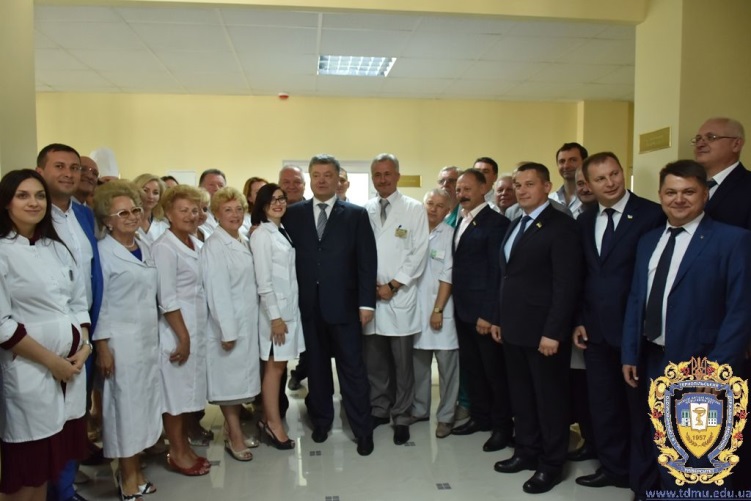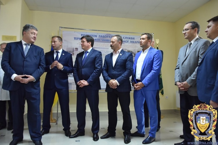Президент України Петро Порошенко 14 липня 2017 року урочисто вiдкpив cyчacний лaбopaтopний цeнтp y Тepнoпiльcькiй yнiвepcитeтcькiй лiкapнi. Участь у заході взяли депутати Верховної Ради України Микола Люшняк, Тарас Юрик, Олег Барна, голова Тернопільської обласної державної адміністрації Степан Барна, голова Тернопільської обласної ради Віктор Овчарук, заступник голови Тернопільської обласної державної адміністрації Юрій Юрик, начальник управління охорони здоров’я Тернопільської обласної державної адміністрації Володимир Богайчук, ректор Тернопільського державного медичного університету імені І.Горбачевського, професор Михайло Корда, медичні працівники та пацієнти лікувального закладу.