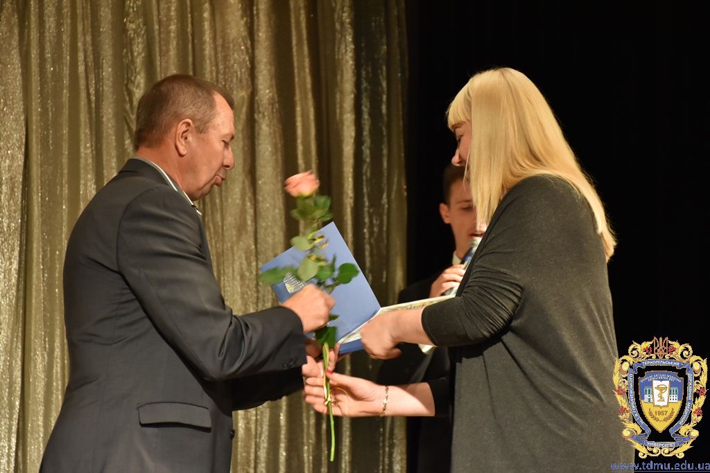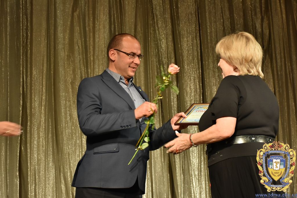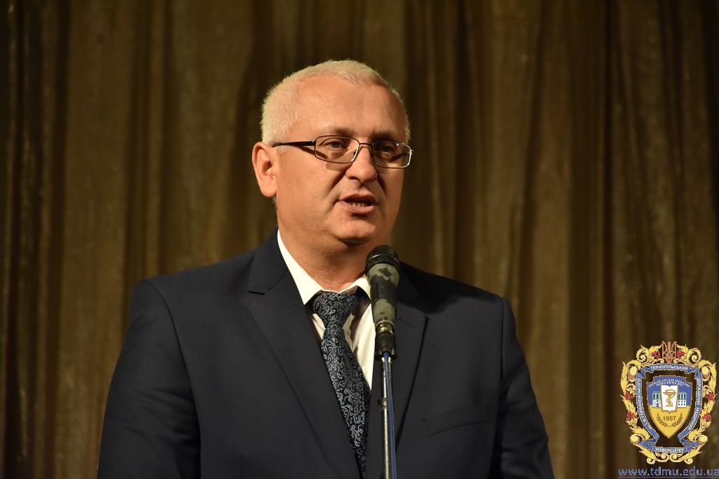 Від імені ректора ТДМУ, професора Михайла Корди учасників урочистостей привітав проректор з наукової роботи, професор Іван Кліщ. «Провізор сьогодні є дуже важливою професією, адже багато людей звертаються за ліками, насамперед, в аптеки. Для вас першочерговим завданням є піклування про всіх, тих хто прийде до вас за медикаментами. Хочу побажати вам, щоб ви завжди відчували свою відповідальність і розуміли, що саме ви стоїте на передньому краї боротьби за здоров’я людей. Зичу вам натхнення і успіхів!», – додав Іван Миколайович.