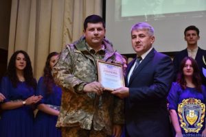 «День захисника Вітчизни є особливим святом, яке уособлює перемоги наших воїнів, мужність і патріотизм усіх тих, хто боронив і звільняв наші землі. Особлива подяка тим, хто сьогодні перебуває на передовій. Сьогодні в залі присутній асистент кафедри мікробіології, вірусології та імунології Микола Винничук, який продовжує виконувати свою місію у Збройних силах України. Також тут з нами є викладачі і працівники університету, які були в зоні АТО. Сьогодні згадуємо і тих, хто беріг наш спокій, давав можливість працювати, розвивати науку і навчатися щодня у мирних умовах. Це також те свято, яке ми повинні відзначати з особливою віддачею, роблячи свій внесок у розвиток рідної країни, зміцнюючи її в усіх галузях, зокрема в оборонній», – зазначив проректор.