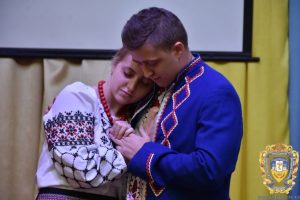 Студент п’ятого курсу медичного факультету Андрій Дивак і студентка четвертого курсу медичного факультету Марія Чумадевська представили театралізовану мініатюру про славне минуле України і про щирість почуттів між дівчиною та козаком, який вирушав на війну з ворогом.