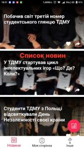 З листопада цього року повноцінно почав працювати мобільний додаток ТДМУ, який є не лише зручною платформою для спілкування, а й програмою оброблення і передачі медіа-інформації, користування інтернет-ресурсами, швидкого доступу до новин та різних матеріалів. Це допомагає вирішити безліч питань, економить час і зусилля. Цей програмний продукт створили студенти Тернопільського державного медичного університету імені І.Горбачевського.