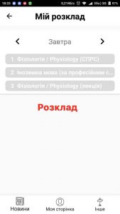 Основна функція додатку – зробити інформування максимально зручним та ефективним і, крім того, забезпечити комунікацію між користувачами. Він буде об’єднує розклад занять, електронну версію бібліотеки, план розташування корпусів – тобто програма розміщує матеріали з офіційного сайту ТДМУ та інформацію з системи Moodle. Структура додатку побудована на основі профілю кожного окремого користувача, тобто для початку роботи необхідна буде авторизація, що дасть можливість об’єднувати студентів-одногрупників, створювати перелік рекомендованих контактів чи підбирати стрічку новин.
