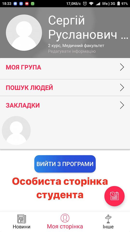 Основна функція додатку – зробити інформування максимально зручним та ефективним і, крім того, забезпечити комунікацію між користувачами. Він буде об’єднує розклад занять, електронну версію бібліотеки, план розташування корпусів – тобто програма розміщує матеріали з офіційного сайту ТДМУ та інформацію з системи Moodle. Структура додатку побудована на основі профілю кожного окремого користувача, тобто для початку роботи необхідна буде авторизація, що дасть можливість об’єднувати студентів-одногрупників, створювати перелік рекомендованих контактів чи підбирати стрічку новин.