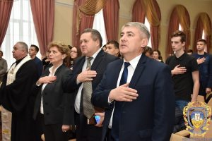 «Шановні учні, педагоги, батьки! Ми раді вітати вас в стінах нашого університету, – звернувся до присутніх проректор з навчально-педагогічної роботи, професор Аркадій Шульгай. – Насамперед, хочу передати найщіріші вітання від ректора, професора Михайла Михайловича Корди та побажати вам успіху на шляху здобуття медичної професії».