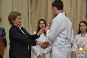 «Це свято вступу до майбутьої професії і символічно, що відбувається воно у стінах чудового вищого медичного навчального закладу. Медик – найблагородніша професія, але водночас дуже нелегка. Бути справжнім медиком означає любити людей і вміти допомогти пацієнту в скрутну хвилину, коли є небезпека для його здоров’я, а то й життя. Сьогодні ви складете клятву і отримаєте пам’ятку ліцеїста, яка нагадуватиме про головне у міжлюдських стосунках – добро, гуманність, милосердя, про те, що життя і здоров’я – найбільша цінність. Бажаю кожному здійснити свою мрію, бути здоровим і успішним», – додала Тетяна Степанівна.