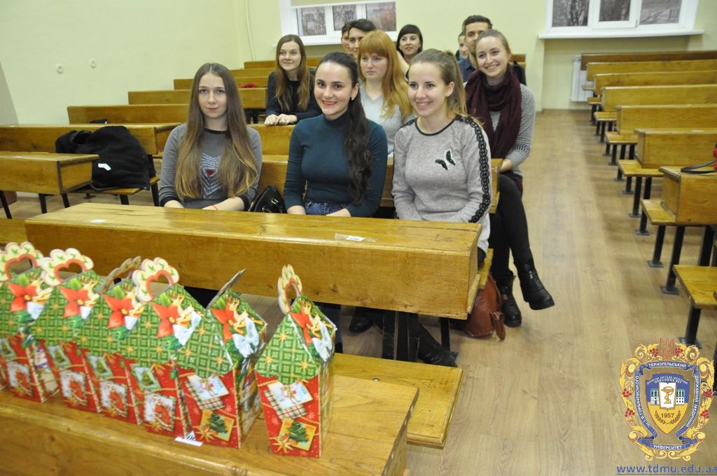 Грудень – особливий період в році, коли кожен поспішає завершити розпочаті справи і запланувати нові, з більшим натхненням вірить у дива та здійснення бажань. Та найбільше цей місяць привабливий тим, що він приносить багато приємних подарунків у день Святого Миколая, перед настанням Нового року. Профспілковий комітет Тернопільського державного медичного університету імені І.Горбачевського розпочав приємну місію щодо створення святкового настрою першим. З нагоди прийдешніх свят було закуплено солодкі подарунки для студентів, які позбавлені батьківського піклування. Окрім солодощів, понад двадцять наших студентів отримали ще й грошову допомогу. Вручення подарунків відбулося 7 грудня 2017 року в адміністративному корпусі ТДМУ.