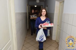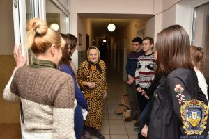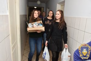 «Ми оголосили про збір коштів на курсі. Упродовж тижня кожен приносив старостам, хто скільки зміг. Згодом сконтактували з заступником директора цього закладу, уточнили дату і час, коли можна приїхати. Ігор Йосипович нам сказав, що було би добре, якби ми підготували кожному невеликий подаруночок і щоб самі їх передали. За його словами, це додасть людям радості. Ми придбали солодощі і мандарини. Запакували 181 невеличкий подарунок. Окрім того, передали 4 ящики печива адміністрації закладу. Його будуть давати перестарілим на сніданки до чаю» – розповіла Таїсія.
