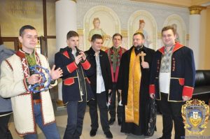 Префекти Тернопільської вищої духовної семінарії імені патріарха Йосифа Сліпого отець Ігор Драпак та отець Януарій Твердун разом зі своїми вихованцями 23 січня 2018 року щиро вітали викладацький та студентський колектив Тернопільського державного медичного університету імені І.Горбачевського з минулими святами та Йорданським водосвяттям.