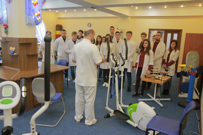 Студенти та викладачі були залучені до виконання всіх етапів реабілітаційного комплексу, який впроваджений в клініці. Особливу увагу було приділено новітнім методикам мануальної терапії та масажу, механотерапії, антигравітаційній терапії, фізіотерапії, атртерапії. Спеціалізовані кабінети механотерапії та лікувальної фізкультури обладнанні різноманітним тренажерами для розвитку сили, координації рухів, удосконалення ходи, поступової вертикалізації тіла. Низку кабінетів спеціально адаптовано для проведення занять за програмою біодинамічної корекції рухів та занять комп’ютерної реабілітаційної ігротерапії.