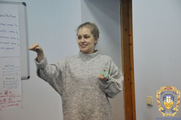 Учасники команди лідерів Тернопільського осередку, зокрема віце-президент з напрямку тренінгів та наукових досліджень Амін Мудасар, HR-віце-президент Саміра Хаятулах та президент Зюзанна Бетковяк провели для всіх членів організації практичне заняття щодо фізичного обстеження пацієнтів.
