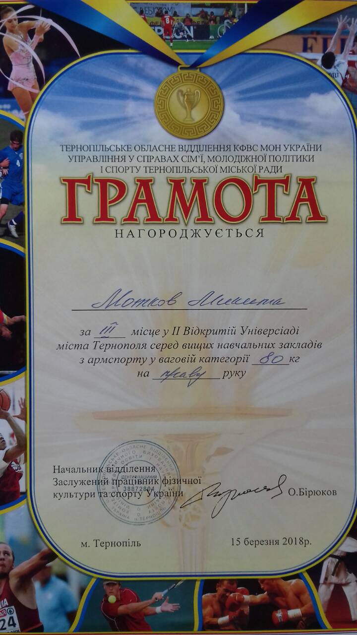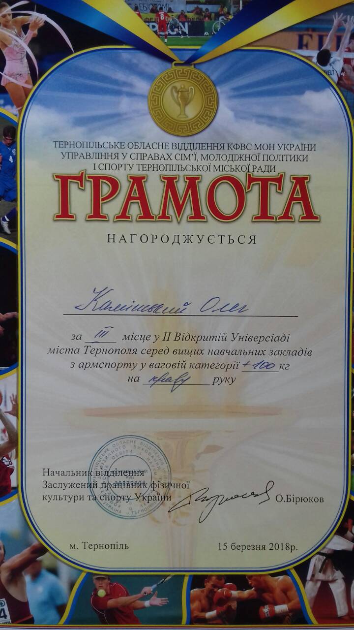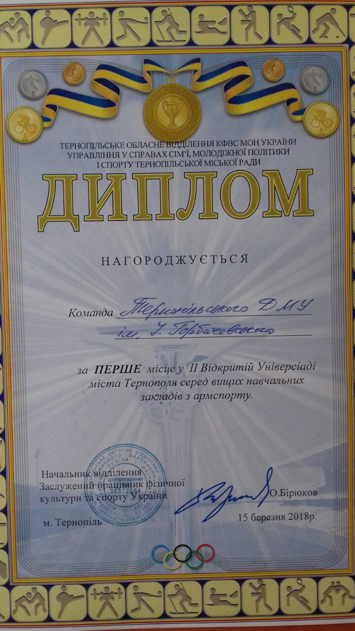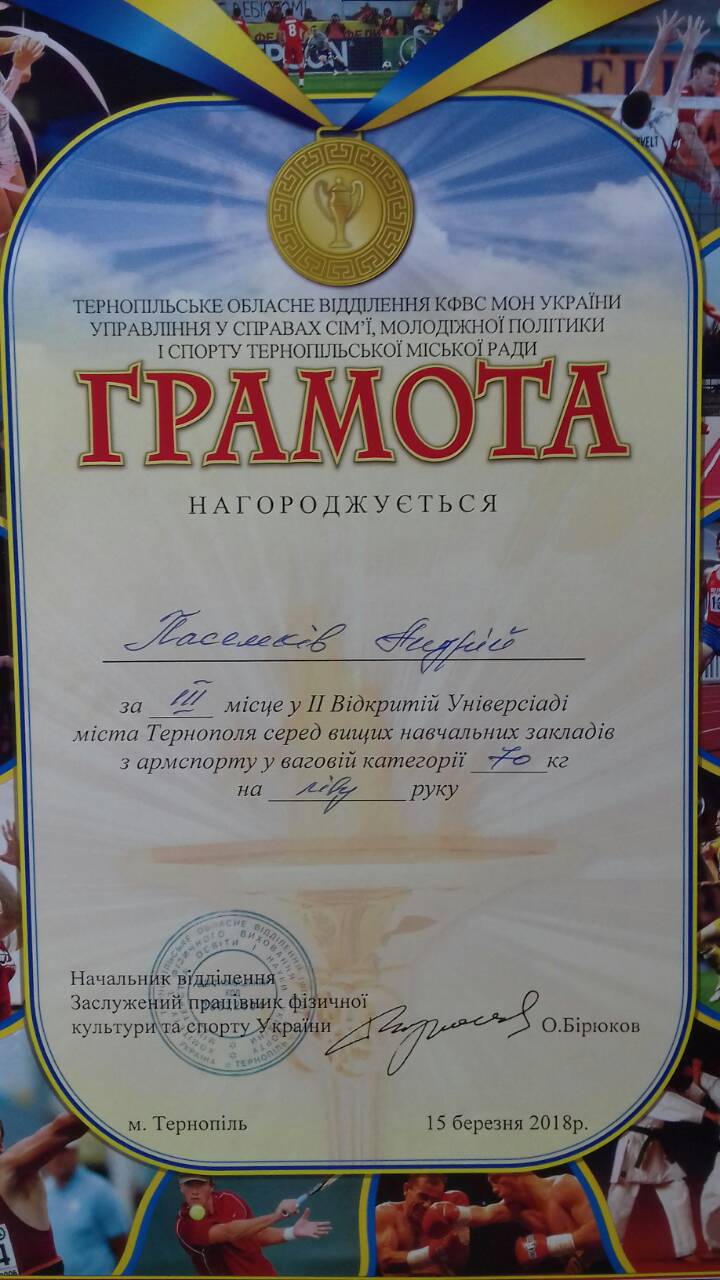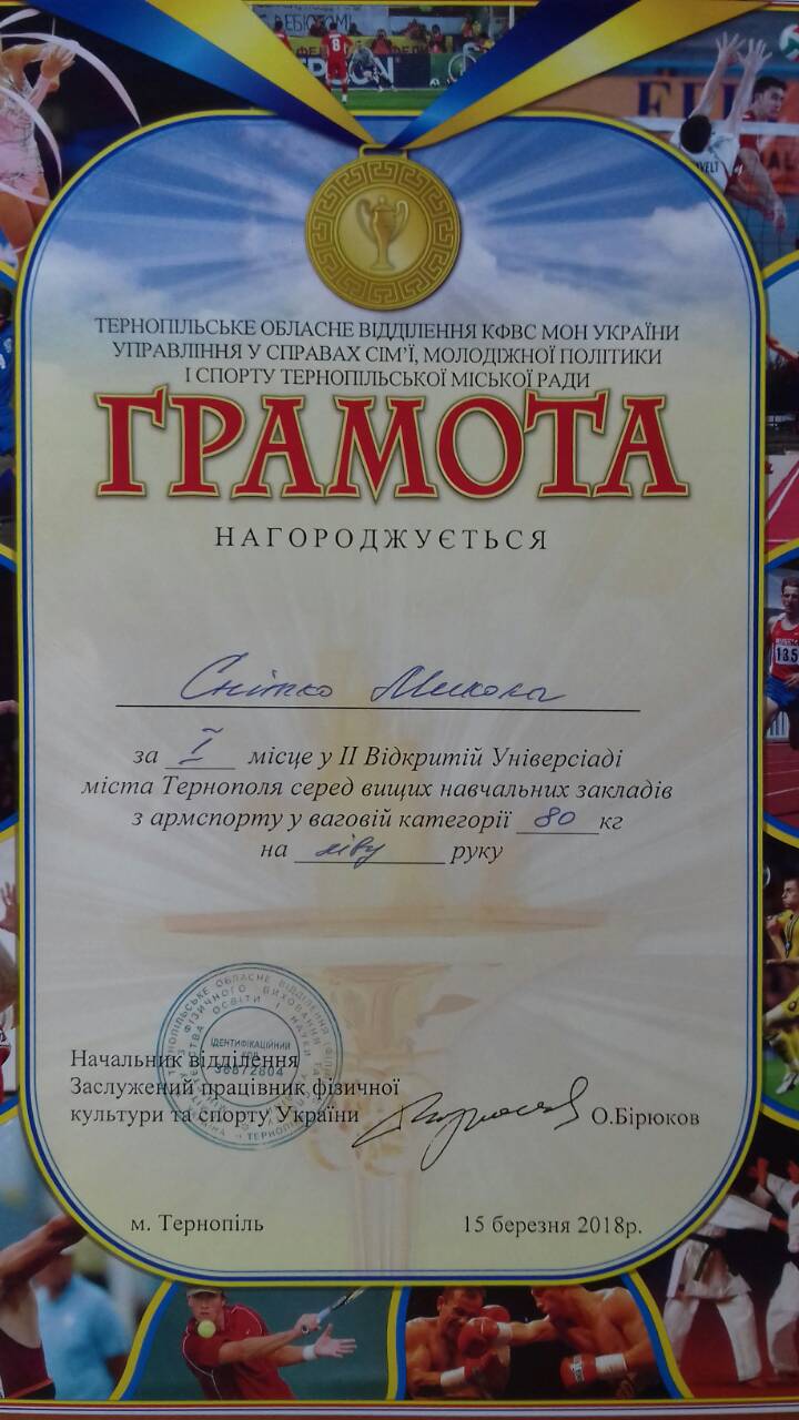 У спорткомплексі «Політехнік» ТНТУ 15 березня 2018 року відбулися змагання з армспорту у рамках II Відкритої універсіади міста Тернополя серед вищих навчальних закладів.