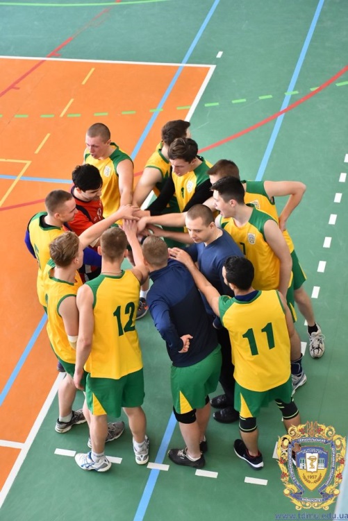 Команди були розділені на дві групи. Наші волейболісти грали з ТНЕУ-1 і ТНПУ-1. Хлопцям вдалося виграти у представників ТНЕУ, натомість поступилися студентам ТНПУ. Таким чином наша команда у своїй групі здобула друге місце. В результаті волейболісти ТДМУ змагалися за третє місце з командою ТНПУ-2, яка також зайнала 2 місце у своїй групі.