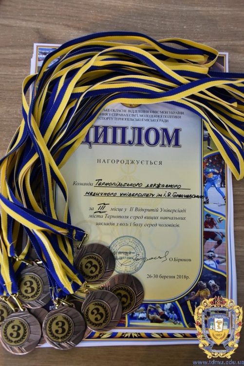 Збірна чоловіча команда з волейболу Тернопільського державного медичного університету імені І.Горбачевського 26-28 березня 2018 року взяла участь у ІІ Відкритій універсіаді Тернополя, яку організували управління у справах сім’ї, молодіжної політики і спорту Тернопільської міської ради та Тернопільського обласного відділення (філії) Комітету з фізичного виховання та спорту МОН України.