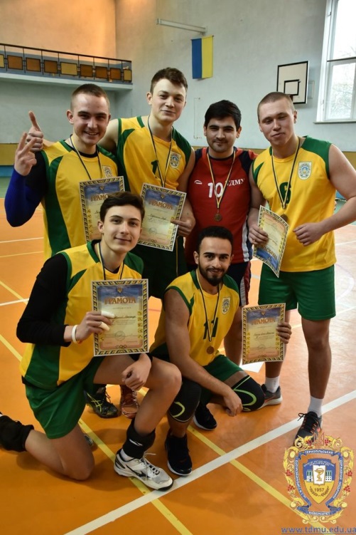 До збірної ТДМУ з волейболу, яка змагалася в Універсіді, увійшли студенти медичного факультету Сергій Петрушенко, Олександр Косовський, Олександр Стрибулевич, Андрій Стахів, Іван Ососкало, Михайло Гаврилюк, студент стоматологічного факультету Макар Горщар, студент навчально-наукового інституту медсестринства Володимир Лисак і представники факультету іноземних студентів Hamid Omar Abdulrab і Eduard Svamberk. Капітан команди – Ігор Вараниця.